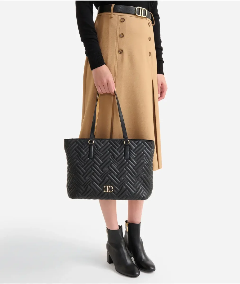 - Borsa shopping in tessuto effetto nappa trapuntato