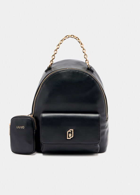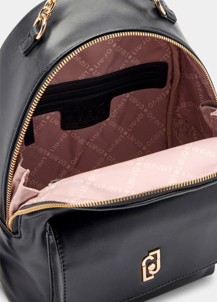 Zaino medio marrone chiaro Logo LJ in metallo Tasca frontale con patta Dettaglio catena Spallacci regolabili Pochette rimovibile Tasca interna Fodera interna logata Chiusura con zip Dimensioni 24 x 12 x 31 cm