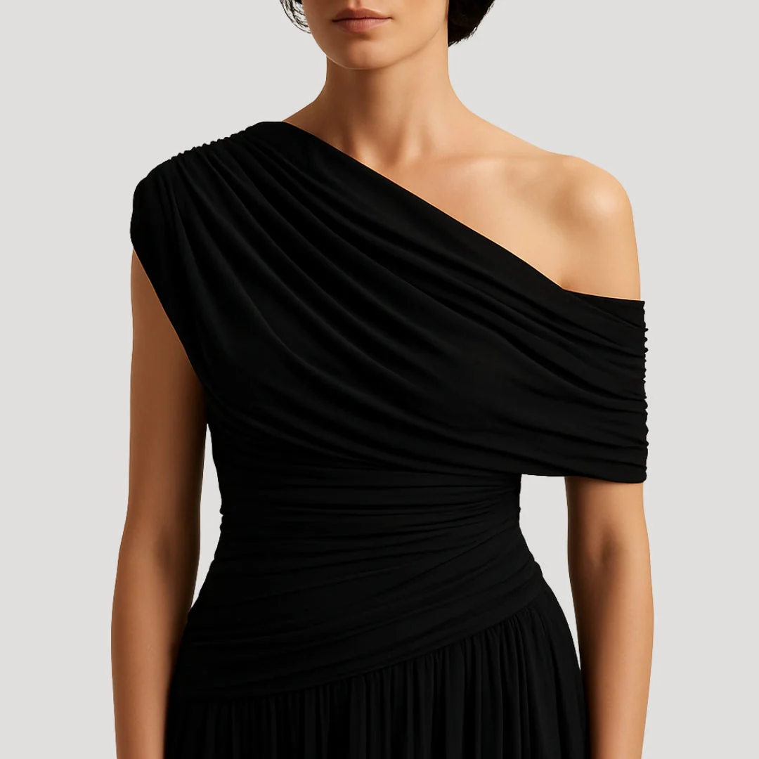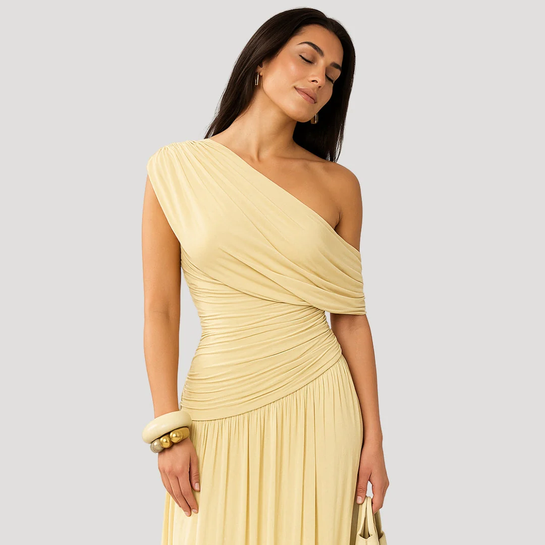 Alina | Donna Vestito Lungo Monospalla con Volant