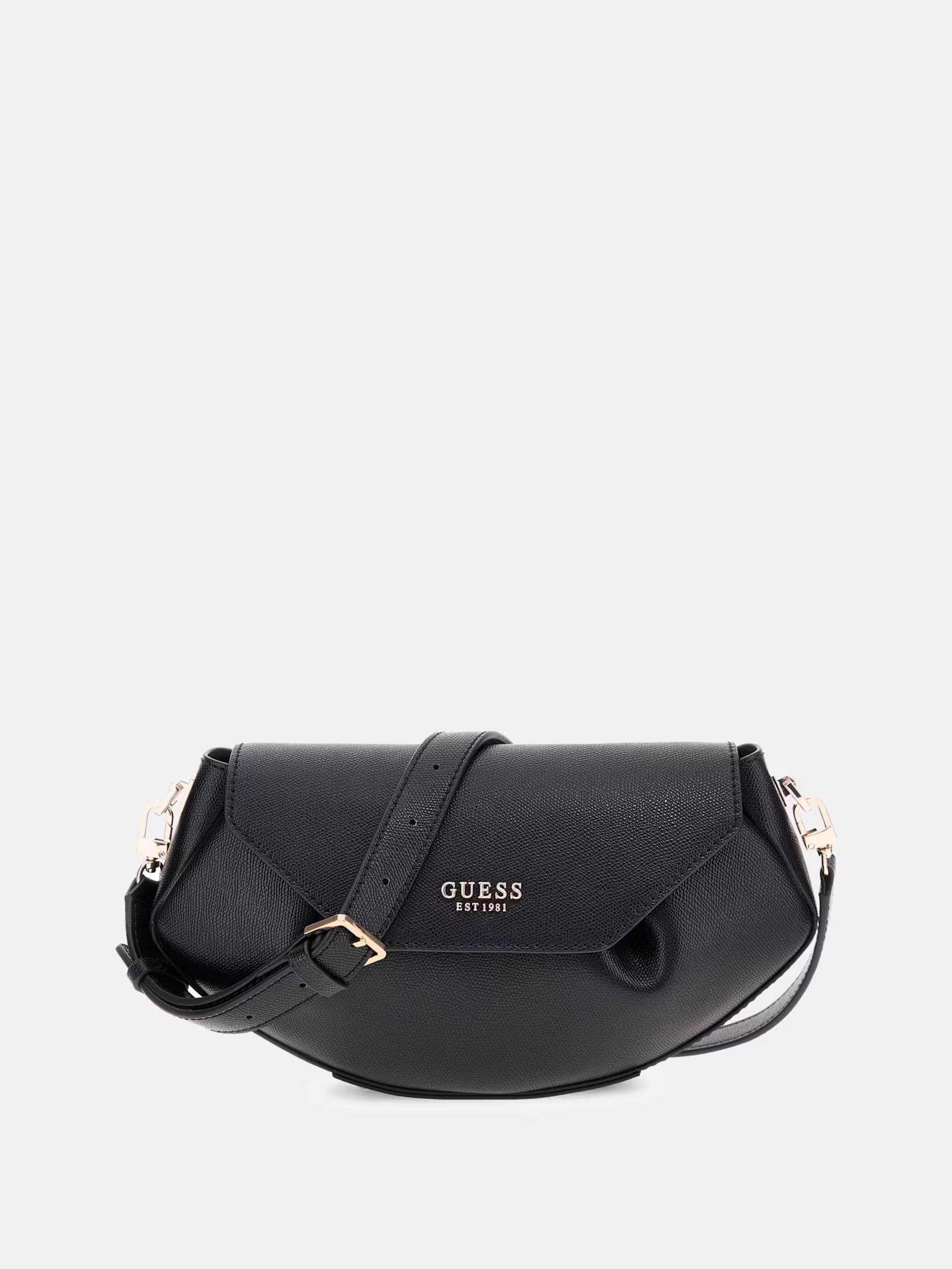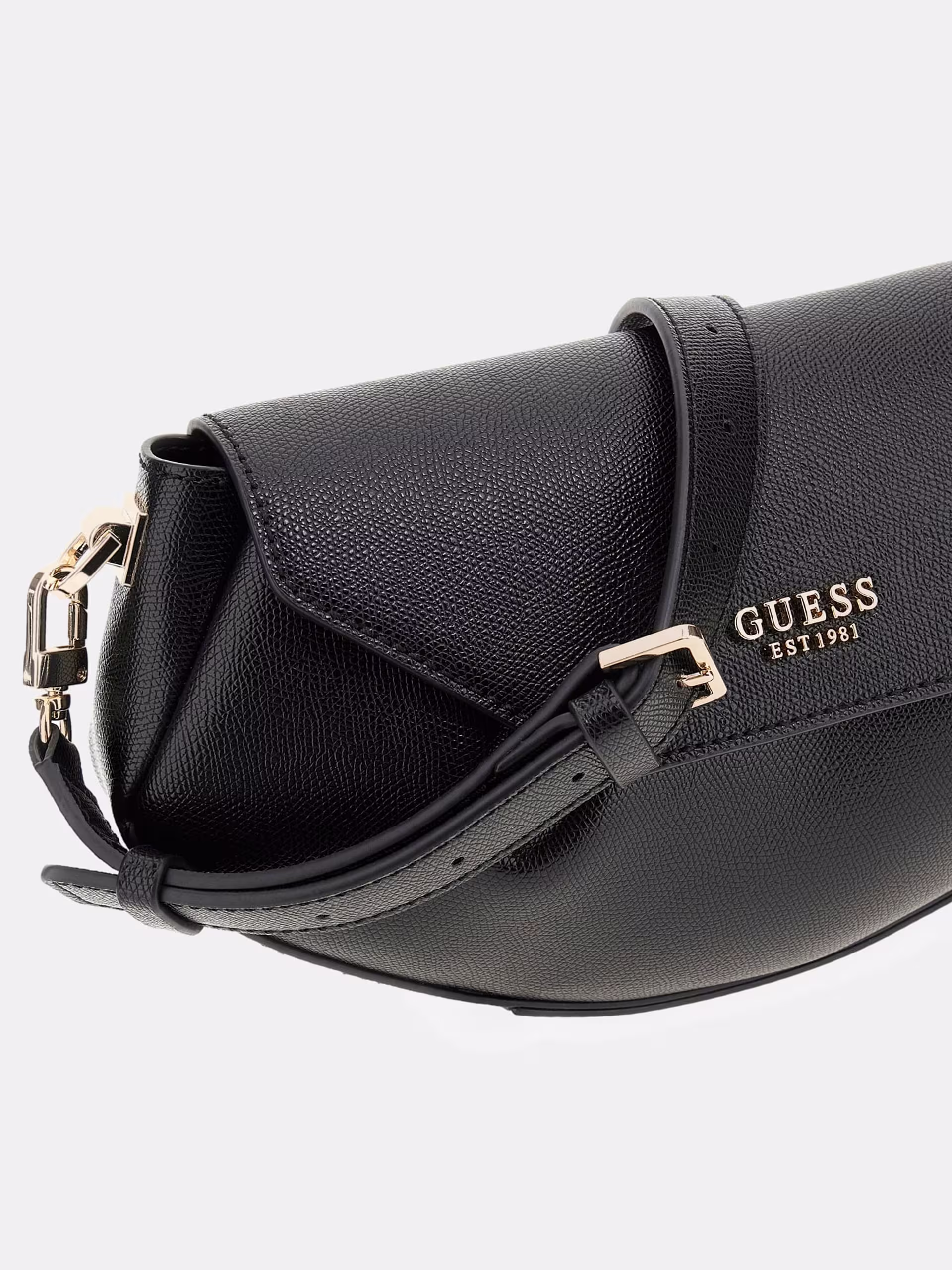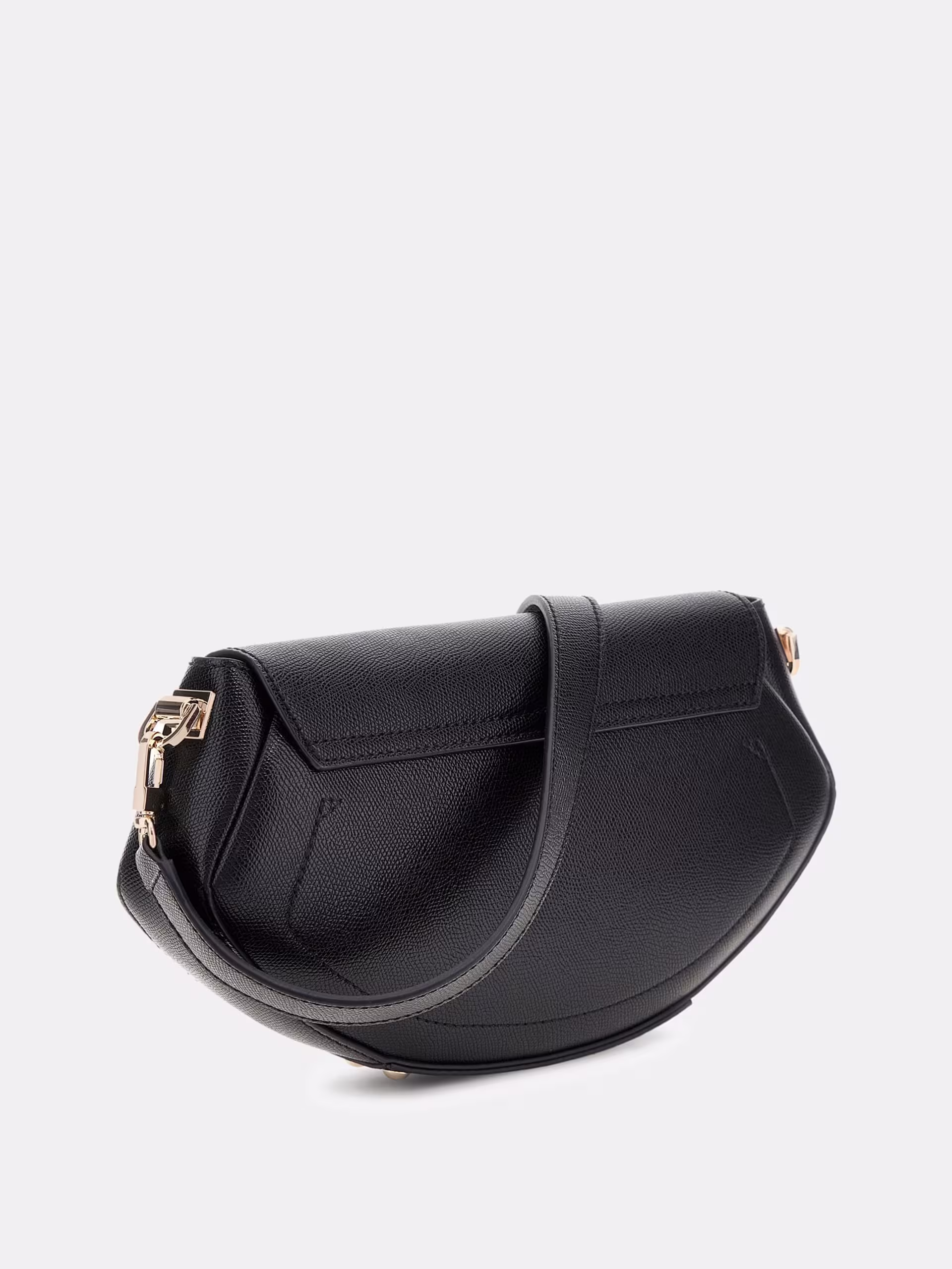 Esterno in simil pelle. Chiusura con patta e bottone. Metalleria color oro pallido. Scritta logo in metallo frontale. Dimensioni 30 x 16 x 5 cm
