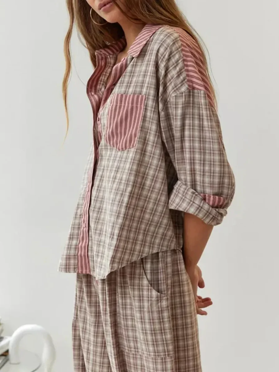 Il pigiama due pezzi Angelica รจ progettato per offrirti il massimo comfort durante il sonno. Realizzato in morbido cotone elasticizzato, questo pigiama รจ perfetto per le notti piรน fresche, con una vestibilitร comoda che garantisce un sonno ristoratore. Il design semplice ma elegante, con maglia a maniche lunghe e pantaloni coordinati, lo rende ideale per rilassarsi a casa. Goditi il massimo relax con il pigiama Angelica, una scelta perfetta per il tuo tempo libero.