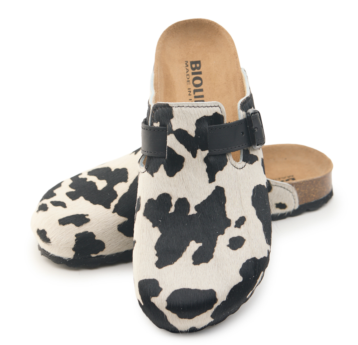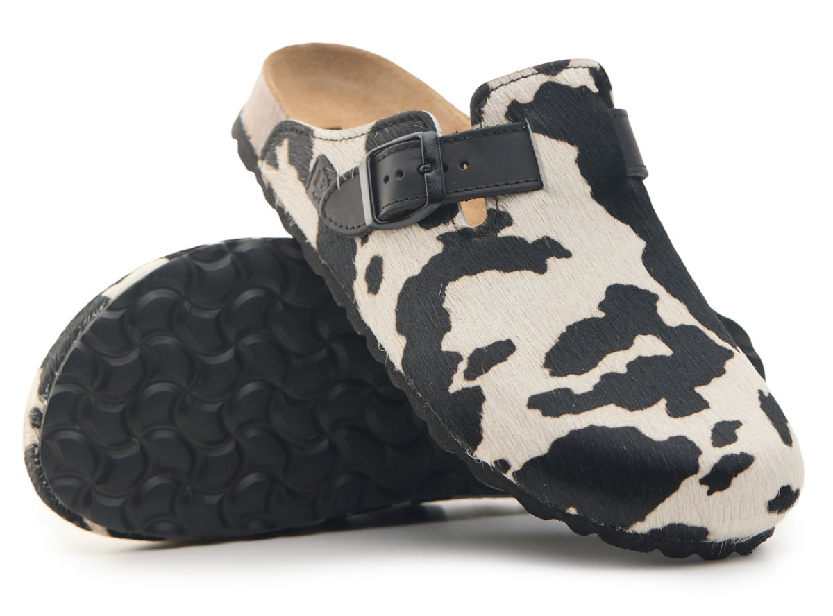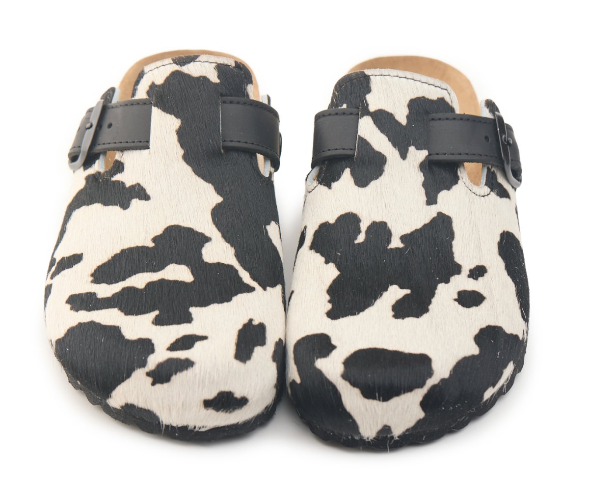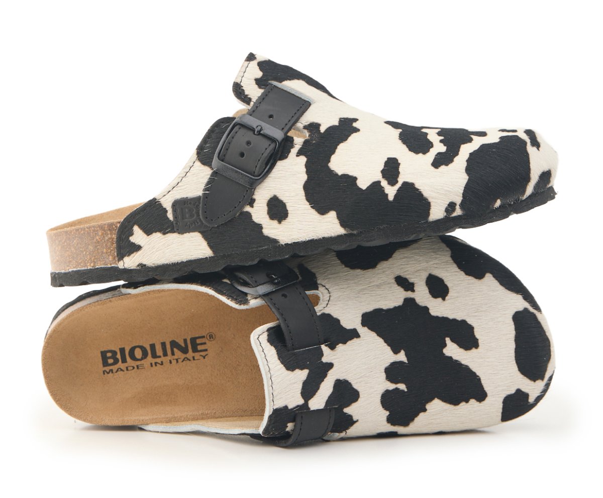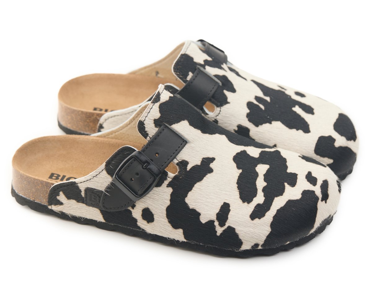 Sabot con tomaia in vera pelle cavallino mucca con cuciture.