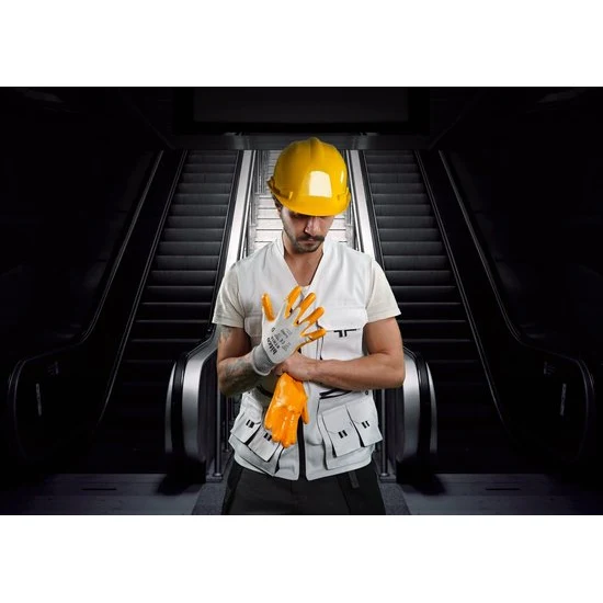 Material Description The gloves are made from polyester yarn and coated with nitrile, providing a full grip with finger coating.
