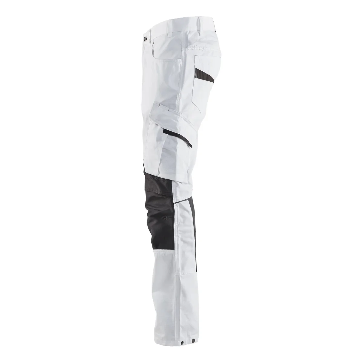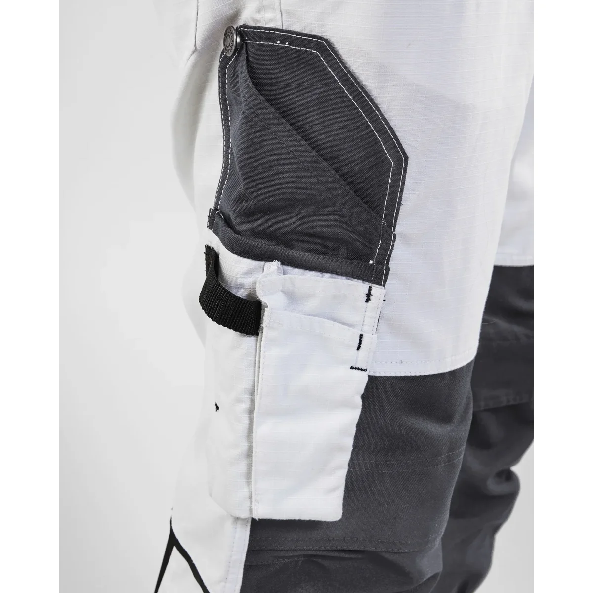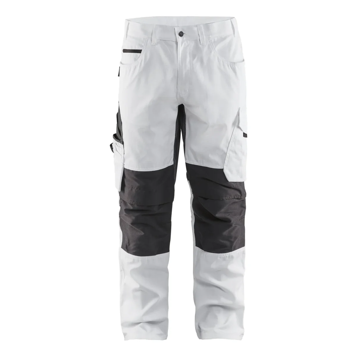 Experience superior comfort and durability with the BLAKLADER Painters Trousers, designed specifically for professional painters. These trousers feature a robust ripstop fabric blend of 60% cotton and 40% polyester, ensuring long-lasting wear and flexibility. The integrated stretch panels and knee pockets provide enhanced mobility and protection, making them ideal for demanding work environments. With a stylish white and dark grey color combination, these trousers are perfect for all-season use and offer practical features tailored to your needs.