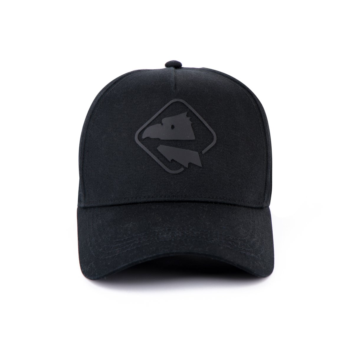 Cappello nero con visiera curva, patch a rilievo dell’iconica aquila Gratton, chiusura regolabile.