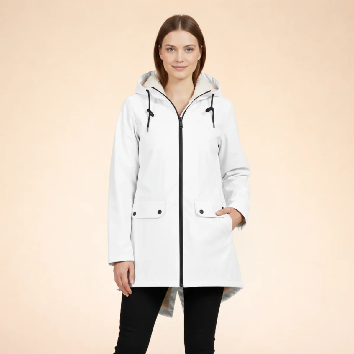 Il cappotto invernale Carla combina eleganza e praticitร , rendendolo perfetto per affrontare le giornate fredde con stile. Questo trench da donna dal design moderno garantisce comfort e protezione grazie alla chiusura con zip e bottoni, mentre il cappuccio rimovibile offre ulteriore protezione dal vento e dalla pioggia leggera.