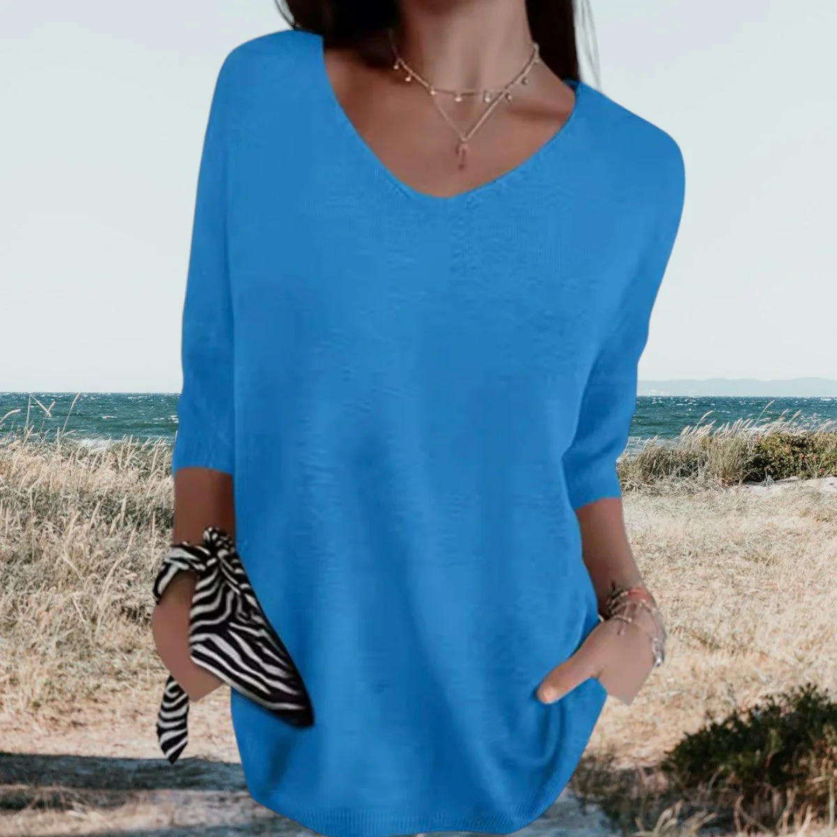 Il top estivo Domenica con scollo a V รจ la scelta ideale per le calde giornate estive. Questo capo combina comfort e stile elegante, perfetto per ogni occasione. Realizzato in tessuto morbido e traspirante, รจ leggero e arioso sulla pelle, assicurandoti un comfort duraturo durante tutto il giorno. L’elegante scollo a V aggiunge un tocco di femminilitร , rendendolo perfetto per uscite casual o momenti di relax estivi.