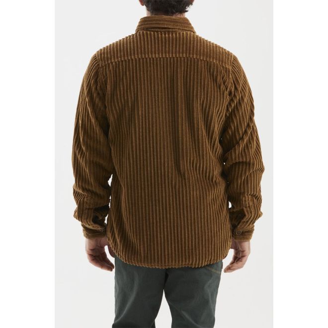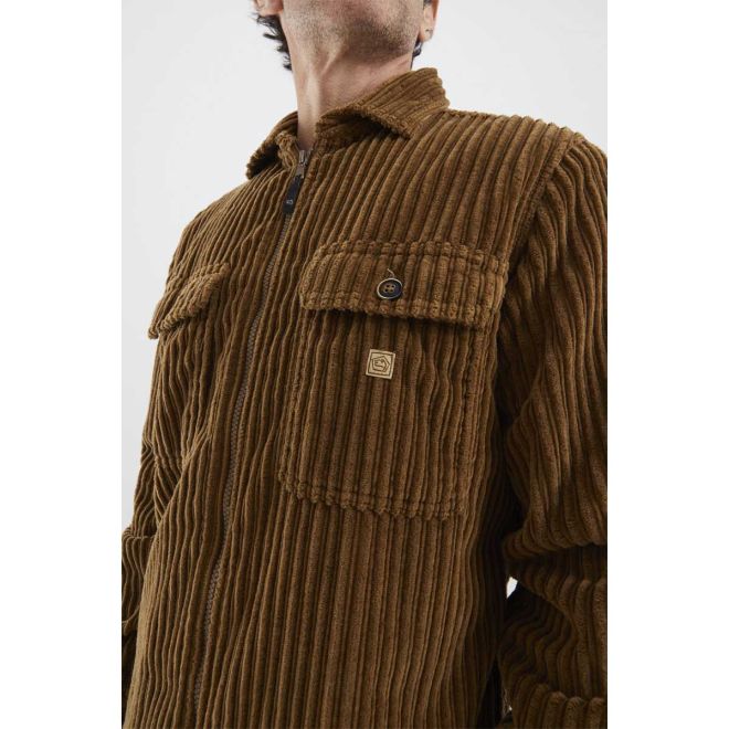 Camicia ampia in velluto a coste 100% cotone. Fodera a quadri. Apertura con zip. Due tasche frontali. Vestibilitร regolare. Prodotto in Italia.