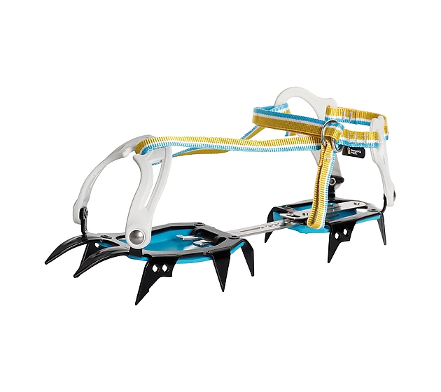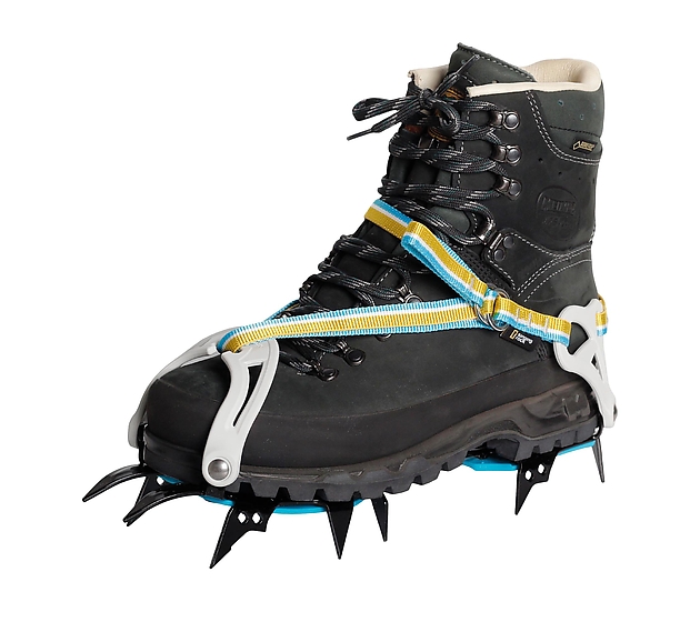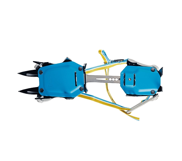 Leggeri ramponi a dodici punte per l’alpinismo classico. Progettato appositamente per tour sui ghiacciai e pendii innevati ripidi. La forma asimmetrica dei ramponi si adatta idealmente allo scarpone e alle punte anteriori fornendo così la massima efficienza su un terreno ripido. Telaio modificato per un peso inferiore e migliori prestazioni di resistenza alla fatica. Il profilo dei denti ribassato offre una migliore stabilità pur mantenendo la trazione. Regolazione delle dimensioni senza attrezzi e fissaggio e rilascio rapido e semplice della fettuccia mediante O-ring. Il telaio è realizzato in acciaio al cromo temprato. La barra centrale in acciaio inossidabile flessibile per un migliore comfort di camminata. Piastre antineve BOUNCER FAKIR III incluse- Sistema di chiusura adatto a scarponcini da trekking più morbidi senza guardolo.