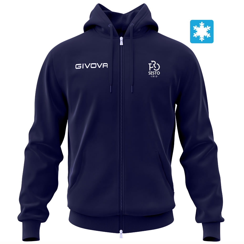 Giacca con Cappuccio: Zip Intera; Logo Givova ricamato; Tasche laterali; Polsini in costina; Fondo Giacca in costina; Logo/patch del Team in transfer Tessuto in felpa garzata adatto ai climi piรน freddi.