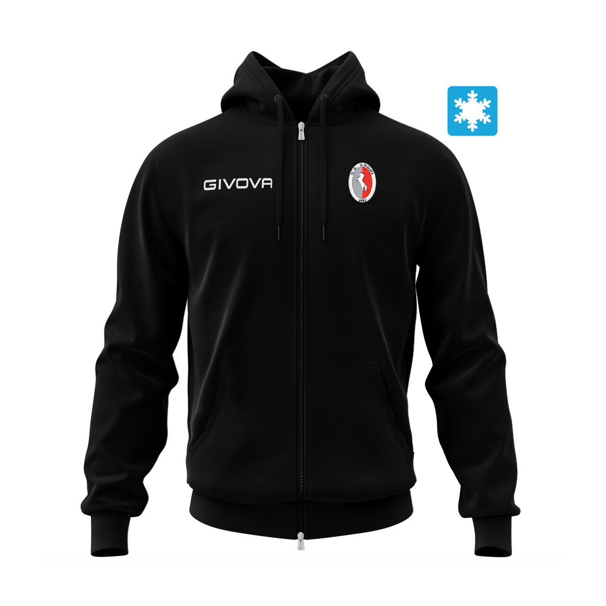 Giacca con Cappuccio: Zip Intera con doppio cursore; Logo ricamato; Tasche laterali; Polsini e Girovita in costina; Tessuto in felpa garzata adatto ai climi piรน freddi.