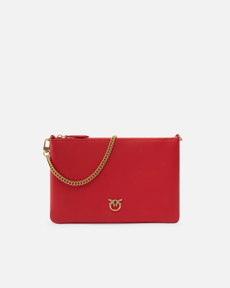 Borsa a tracolla flat in morbida pelle mano seta. Personalizzazione con placchetta Love Birds Diamond Cut. Interno foderato in polycotton e tracolla rimovibile a catena sottile. Chiusura con zip.