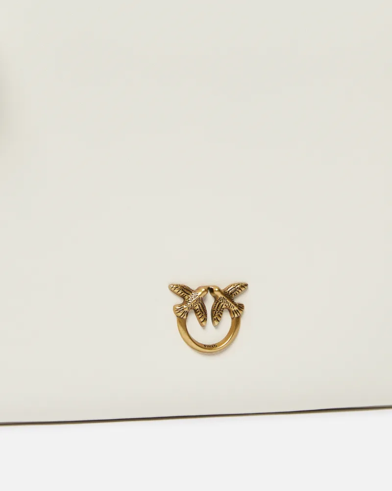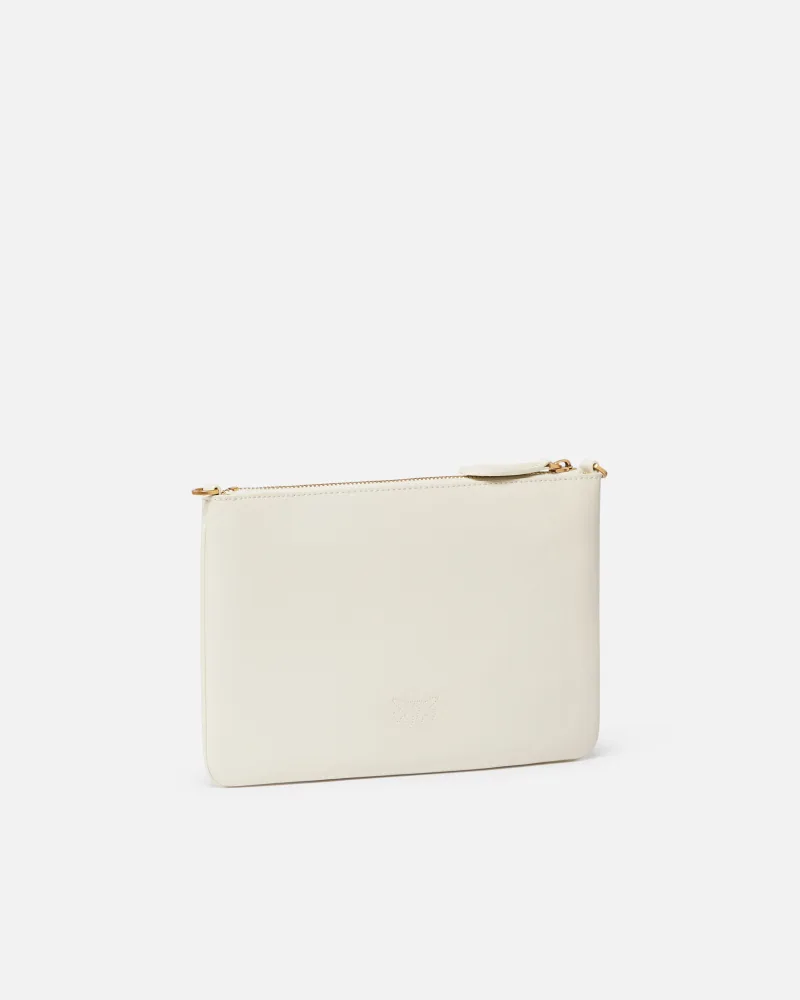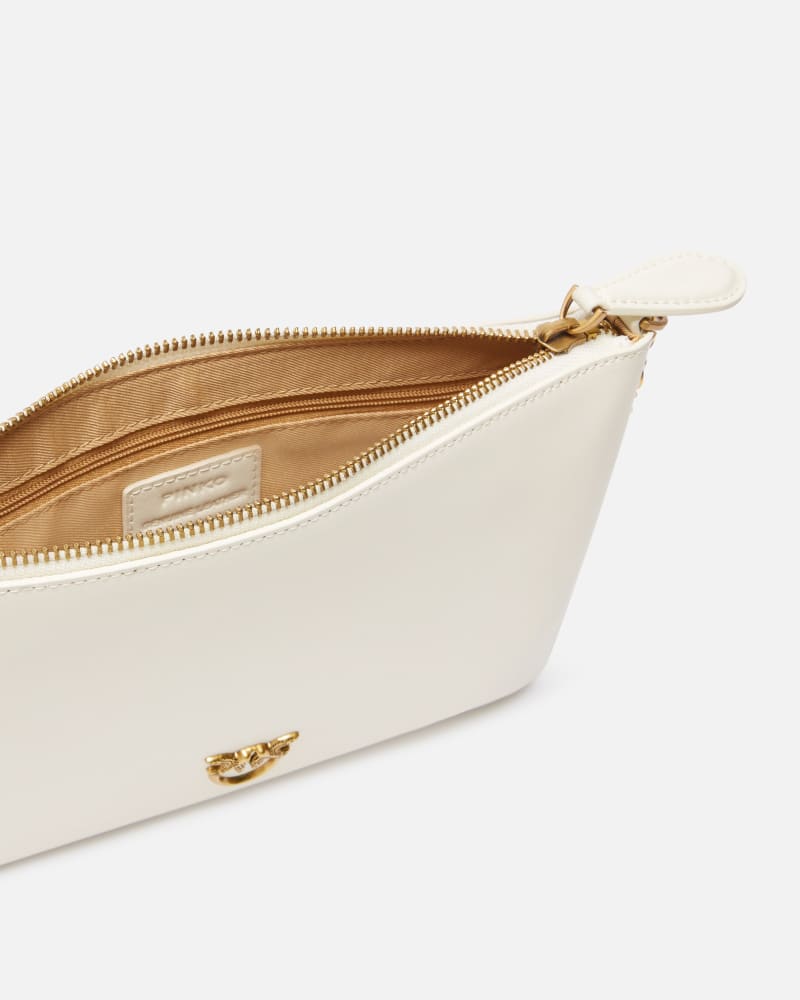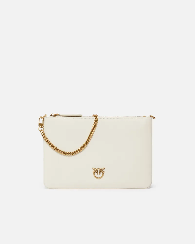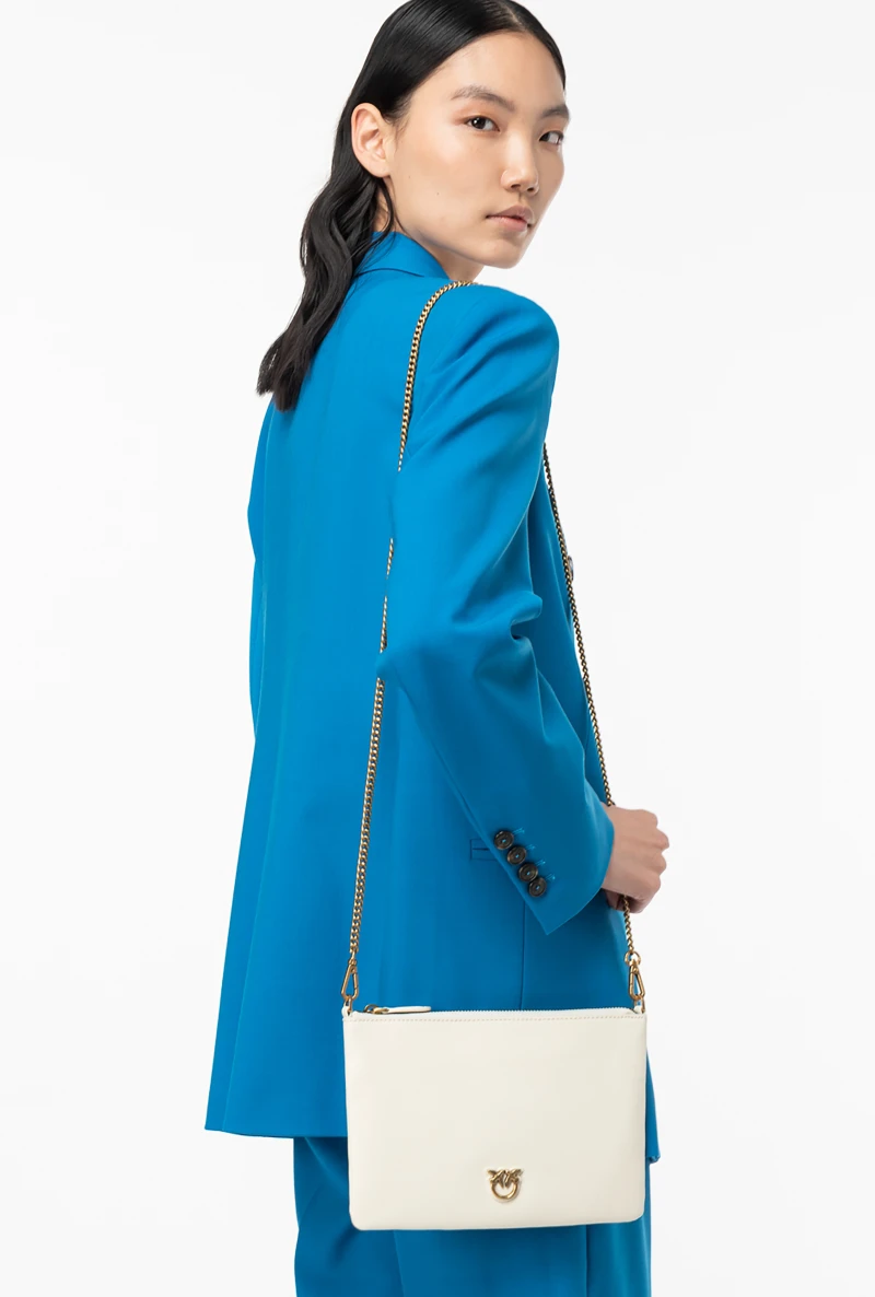 Borsa a tracolla flat in morbida pelle mano seta. Personalizzazione con placchetta Love Birds Diamond Cut. Interno foderato in polycotton e tracolla rimovibile a catena sottile. Chiusura con zip.