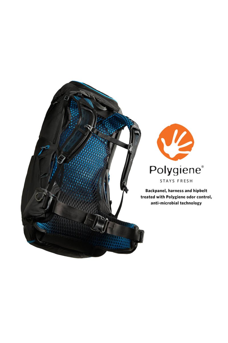 - Pannello posteriore in rete ventilata con tecnologia Stays Fresh Polygiene® (un trattamento anti-odore per i tessuti che impedisce la proliferazione dei batteri responsabili dei cattivi odori)