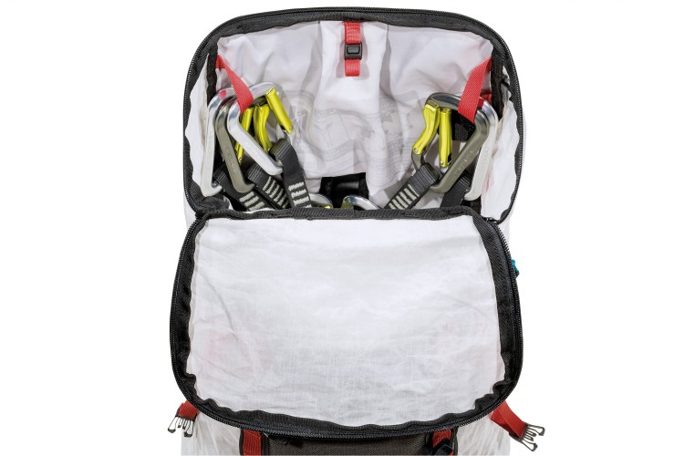 - Accessori: Accesso superiore corpo con lampo | Due porta piccozza | Porta sci frontale | Porta sonda / pala interno | Nastri di compressione laterale | Porta corda superiore con nastri addizionali | Cinturino pettorale con fischietto integrato | Asole porta materiali su fascia a vita e interno dorso | Compatibile col sistema di idratazione H2 Bag | Daisy chain frontale per l’inserimento dei nastri addizionali e l’ottimale organizzazione del materiale esterno | Inserto frontale di protezione in SuperFabric® | Istruzioni SOS | Compatibile con Helmet holder