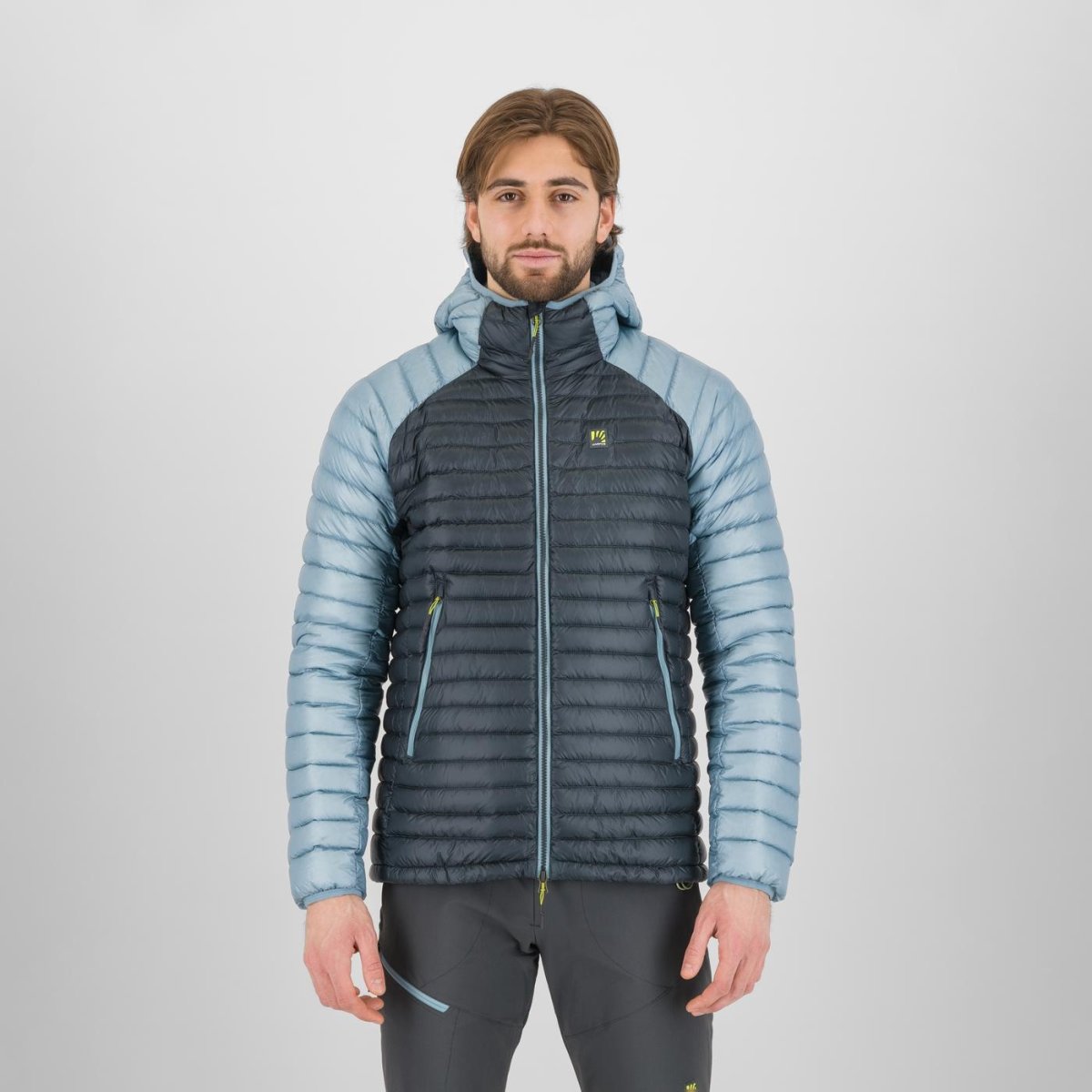 Giacca calda, leggera e sostenibile. Grazie al trattamento DWR realizzato direttamente sulla piuma isola anche in condizioni di massima umiditร .