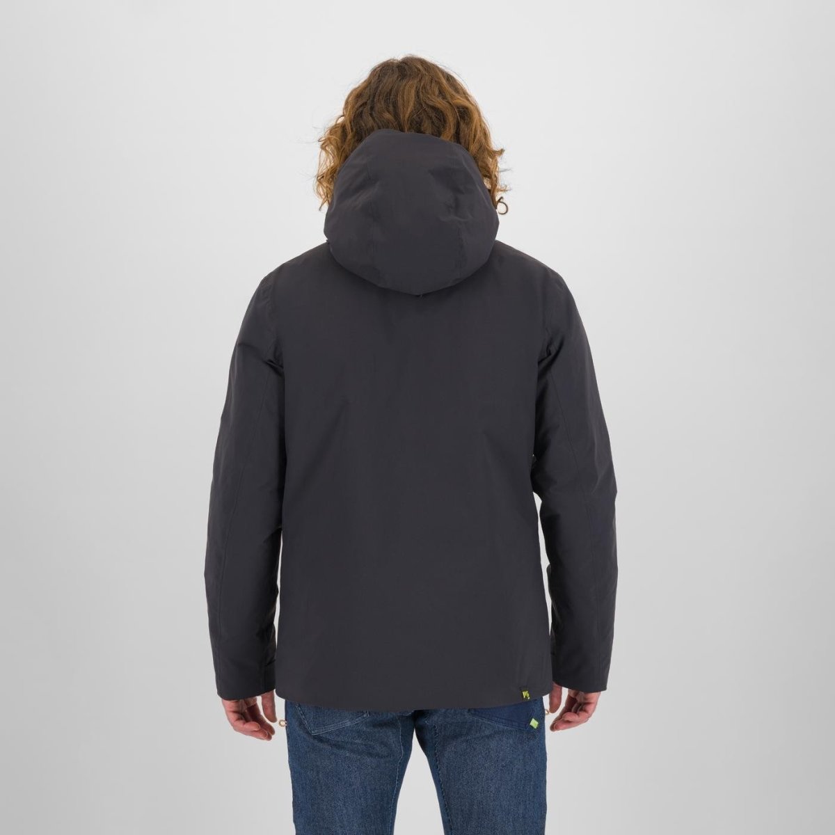 Giacca completamente impermeabile con cappuccio, calda e molto confortevole, pensata per avere tecnicitร nel tempo libero. In tessuto riciclato senza PFAS intenzionalmente aggiunti.