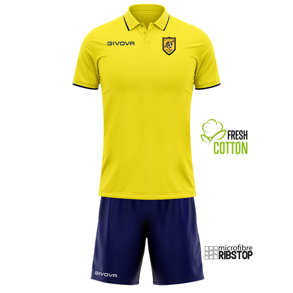 Caratteristiche: Polo: 100% Cotone S/J 160gsm; Loghi ricamati; Colletto con 2 bottoni; Colletto in costina; Giromaniche in costina; Bermuda: 100% poliestere microfibra 110 gsm; Tasche laterali; Tasca sul retro con bottone; Il cotone che Givova usa per i suoi capi รจ il massimo per gli atleti che cercano tessuti leggeri e freschi.