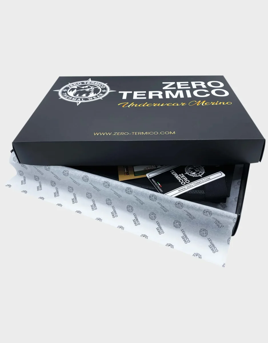 Il nostro Underwear viene consegnato in una bellissima gift box di cartoncino ZERO TERMICO con velina logata. Composizione: 35% Lana Merino Extrafine – 40% Poliammide – 25% Polipropilene. Il tessuto รจ realizzato in Italia e il capo รจ confezionato da un’azienda italiana in Albania.