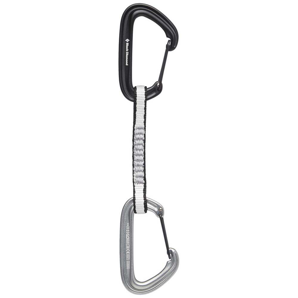 il LiteWire Quickdraw della Black Diamond è un rinvio da arrampicata formato da due moschettoni con la leva a filo e una fettuccia lunga 12 cm e spessa 12 mm.