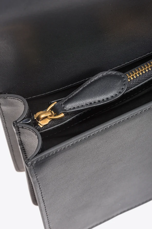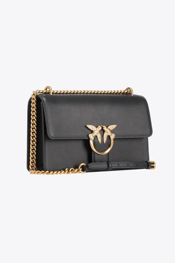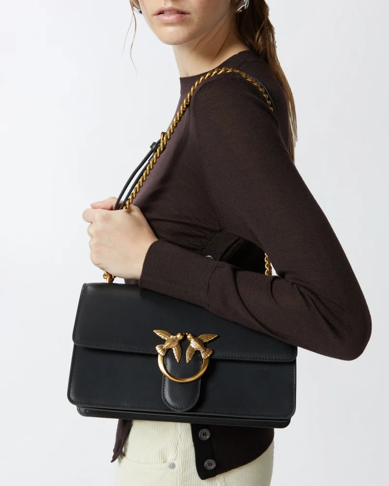 Classic Love Bag One in morbida pelle mano seta. La chiusura è completata dall’iconica fibbia in metallo Love Birds Diamond Cut in metallo. L’interno è foderato in microfibra scamosciata e comprende tramezza chiusa con zip e tasca a parete in pelle. La tracolla combina la classica catena rotonda al pratico spallaccio in pelle regolabile.