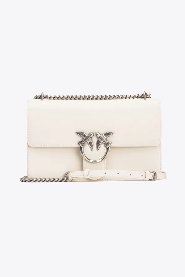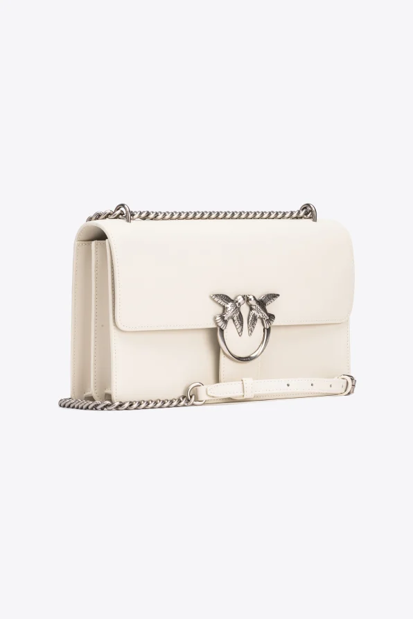 Classic Love Bag One in morbida pelle mano seta. La chiusura è completata dall’iconica fibbia in metallo Love Birds Diamond Cut in metallo. L’interno è foderato in microfibra scamosciata e comprende tramezza chiusa con zip e tasca a parete in pelle. La tracolla combina la classica catena rotonda al pratico spallaccio in pelle regolabile.