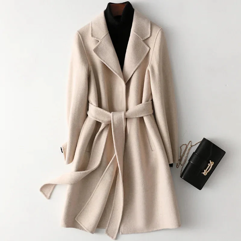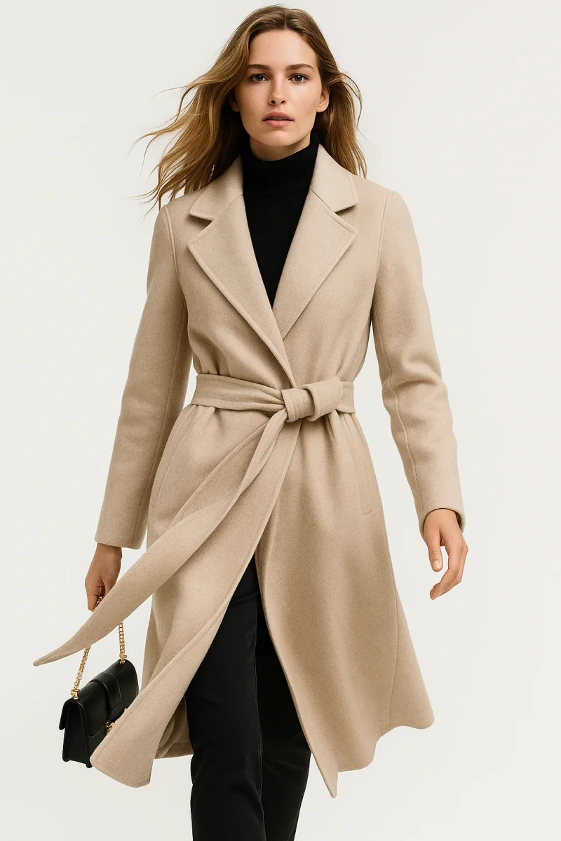 Questo cappotto di media lunghezza รจ realizzato in 100% lana, offrendo un equilibrio perfetto tra eleganza e comfort. La cintura in vita accentua la silhouette, mentre il morbido tessuto assicura calore senza compromettere la leggerezza. Un capo versatile che si adatta a ogni occasione invernale, rendendolo un must per il tuo guardaroba.