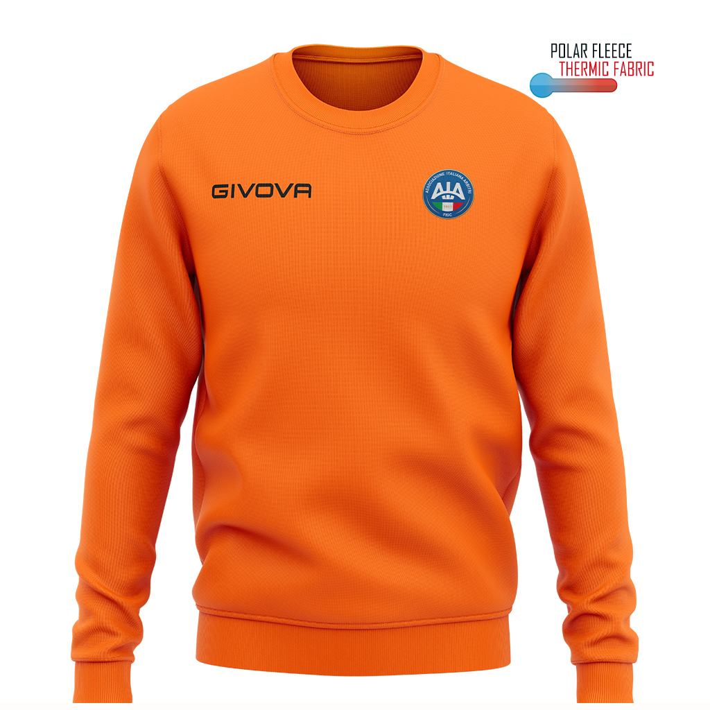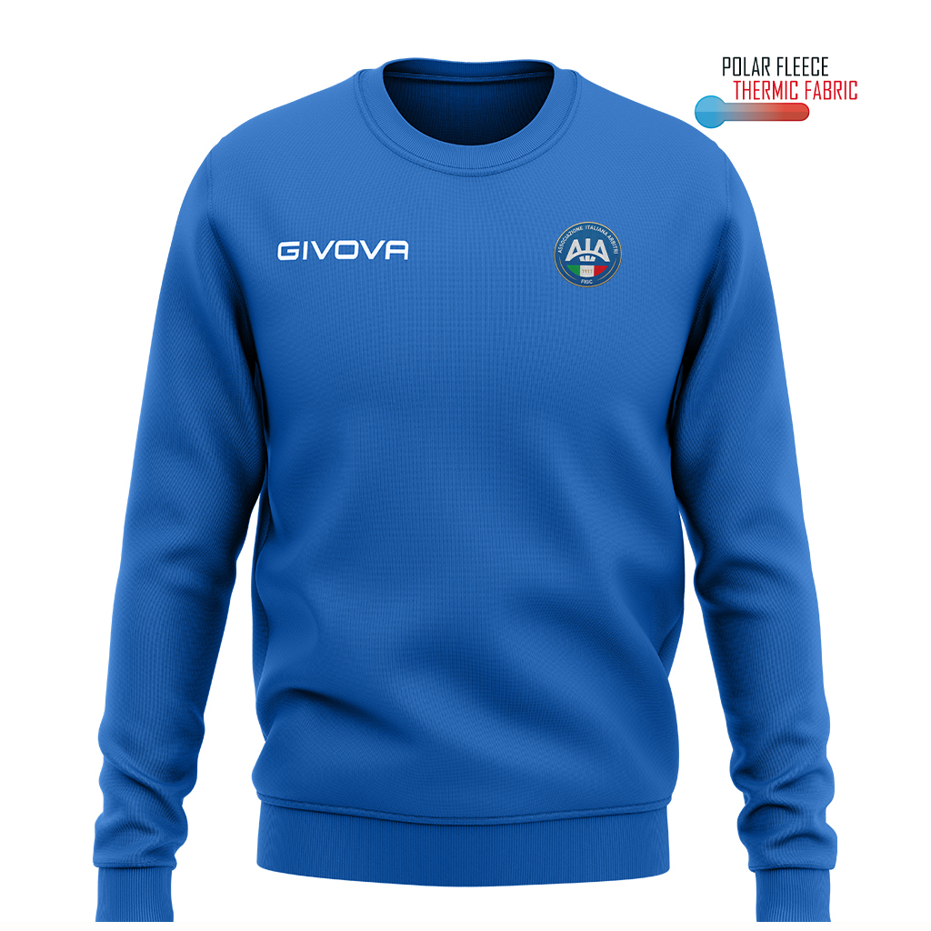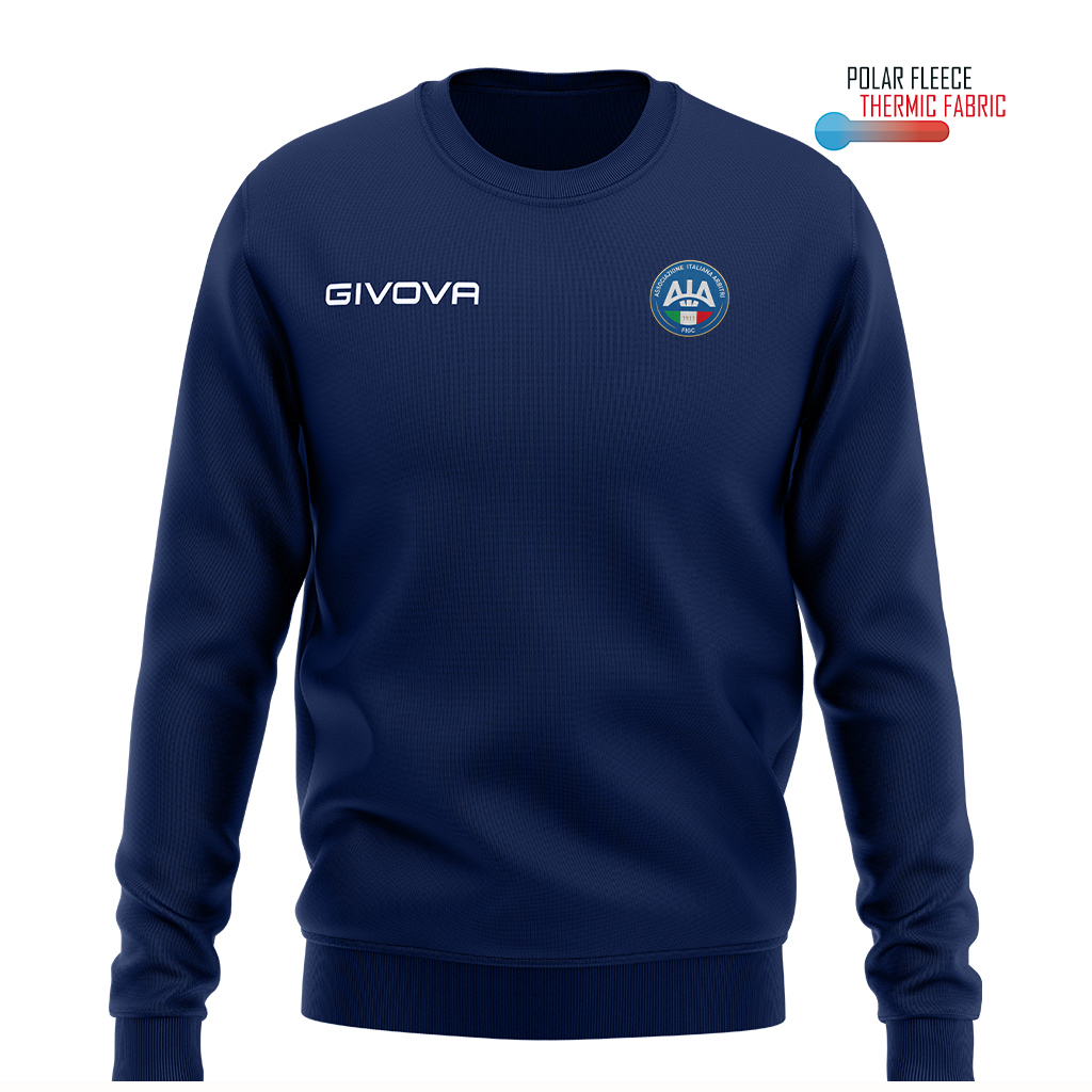 Maglia girocollo unisex, tessuto a costine su colletto, polsini e vita. Garanzia di adattabilitร , comfort e libertร  di movimento. Caratteristiche 100% Poliestere Polarfleece 202 Gsm; Tessuto dalla massima tenuta termica con il minimo peso; Colletto in costina; Giacca girocollo; Logo Givova ricamato. Logo AIA HD Tessuto dalla massima tenuta termica con il minimo peso. La sua versatilitร  lo rende ideale per lโ€™allenamento e perfetto per il tempo libero.