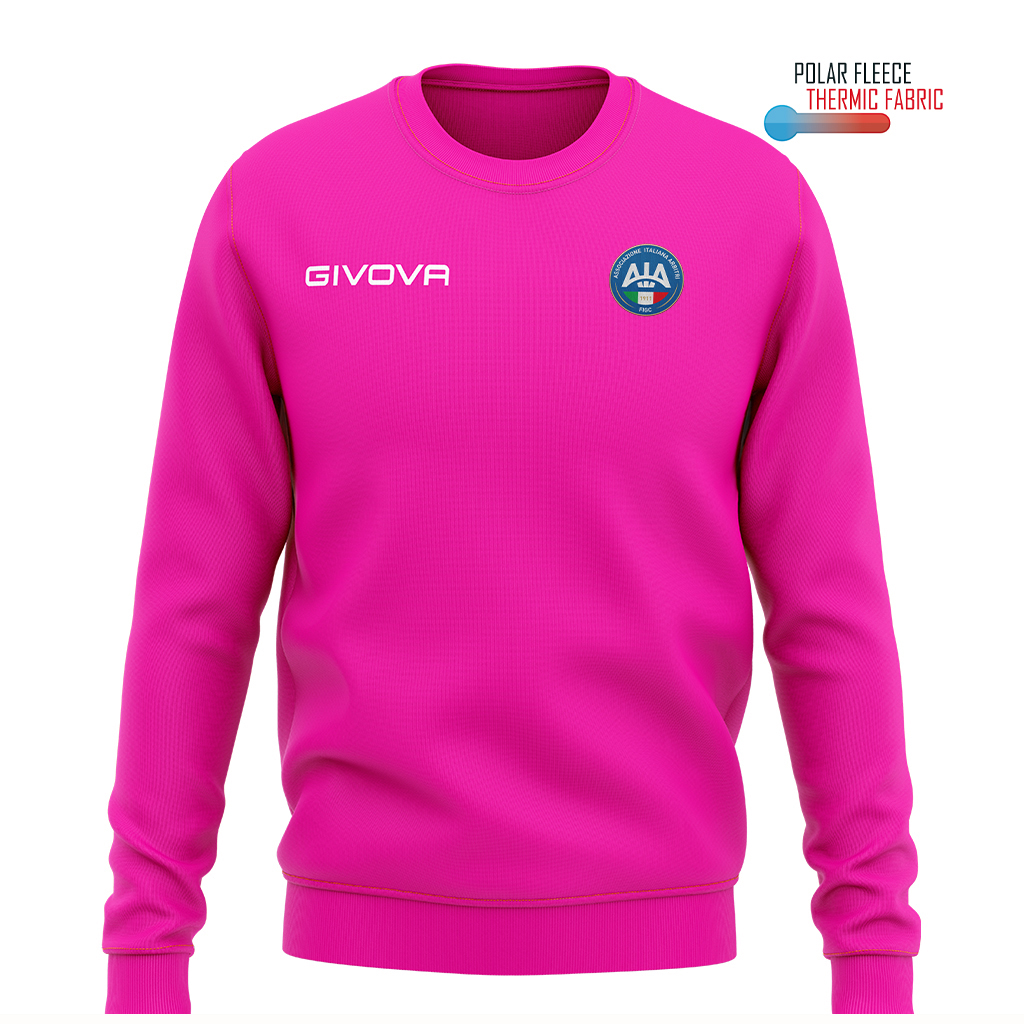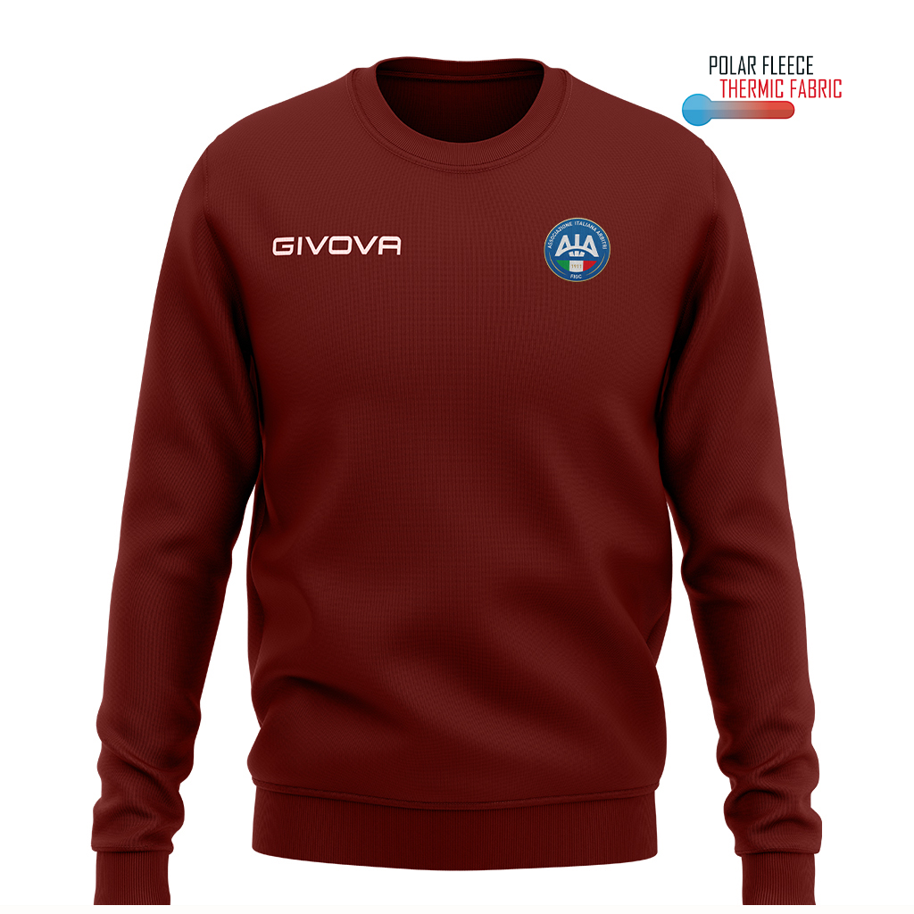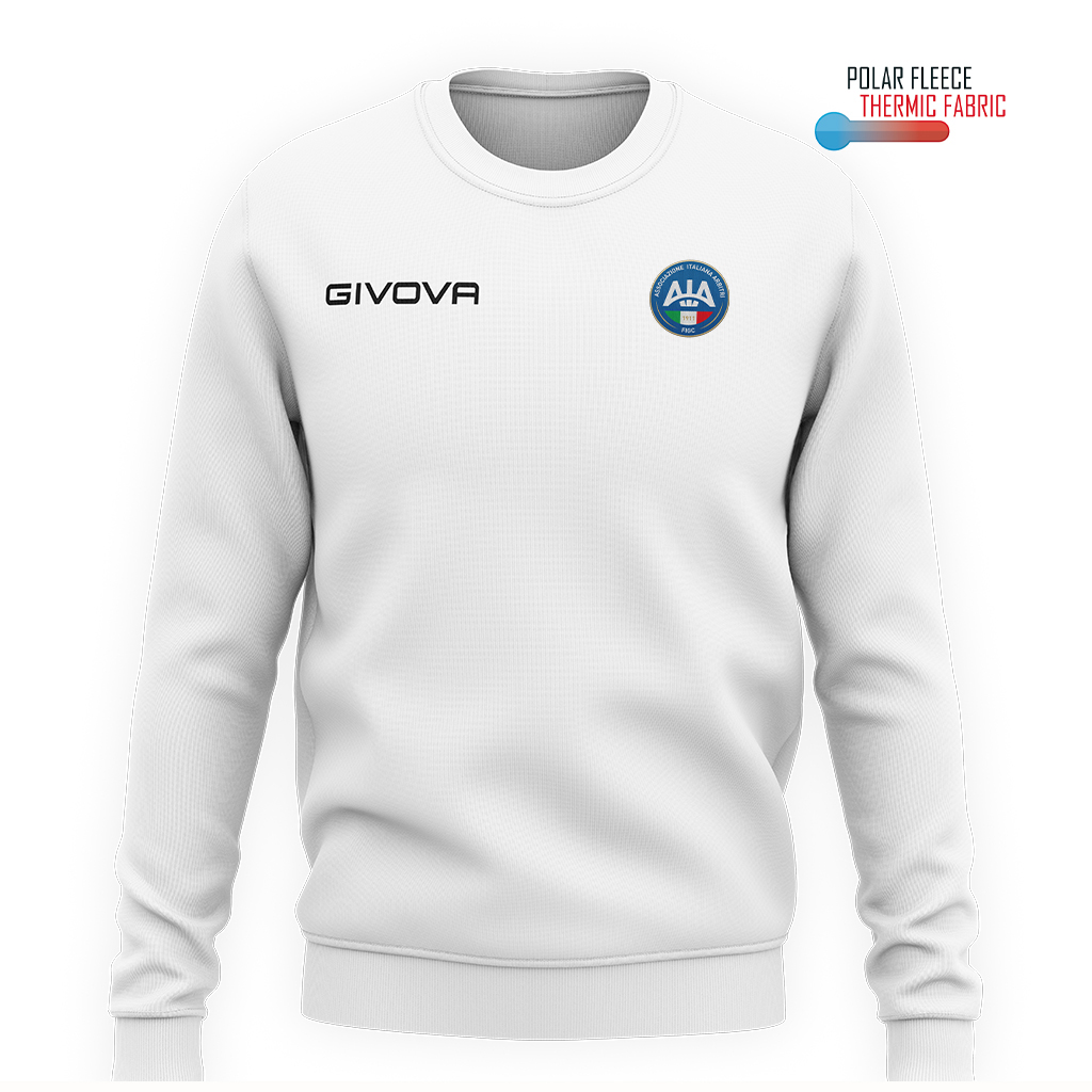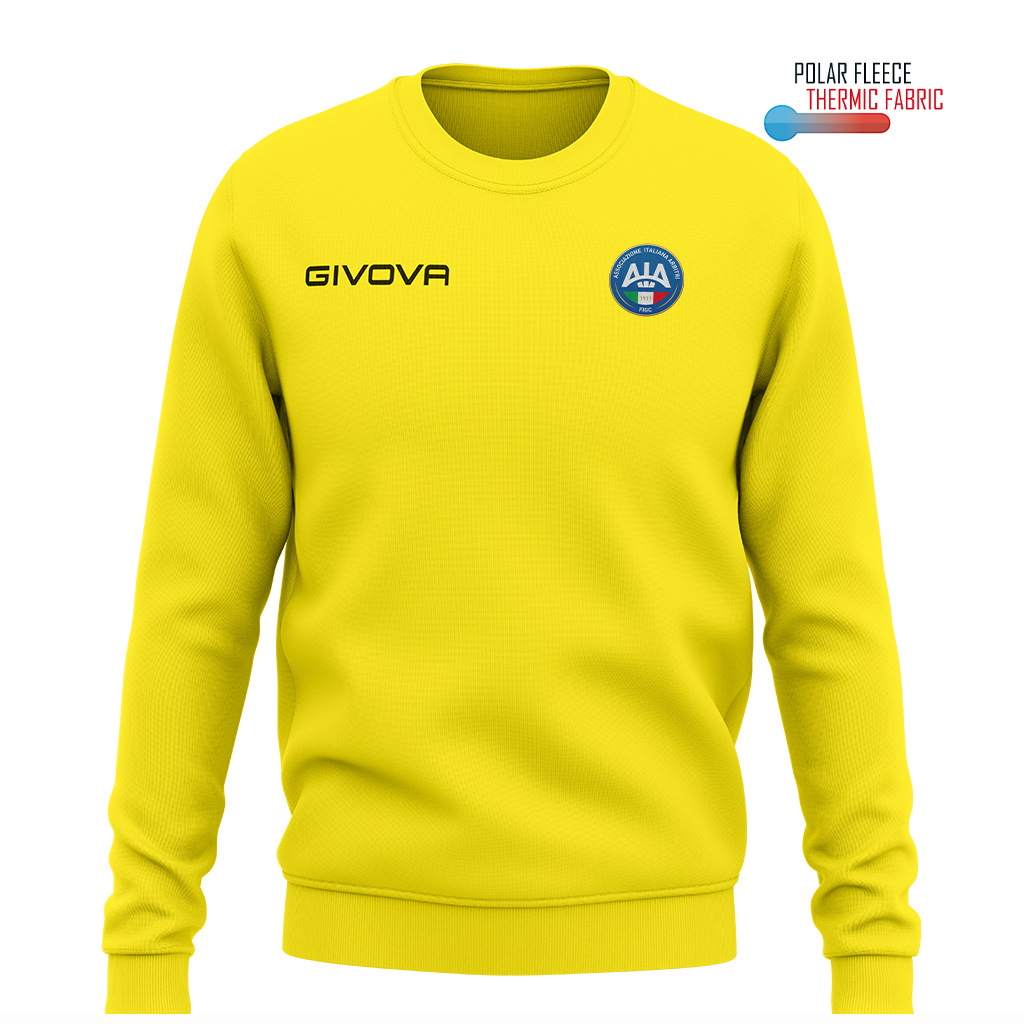 Maglia girocollo unisex, tessuto a costine su colletto, polsini e vita. Garanzia di adattabilitร , comfort e libertร  di movimento. Caratteristiche 100% Poliestere Polarfleece 202 Gsm; Tessuto dalla massima tenuta termica con il minimo peso; Colletto in costina; Giacca girocollo; Logo Givova ricamato. Logo AIA HD Tessuto dalla massima tenuta termica con il minimo peso. La sua versatilitร  lo rende ideale per lโ€™allenamento e perfetto per il tempo libero.