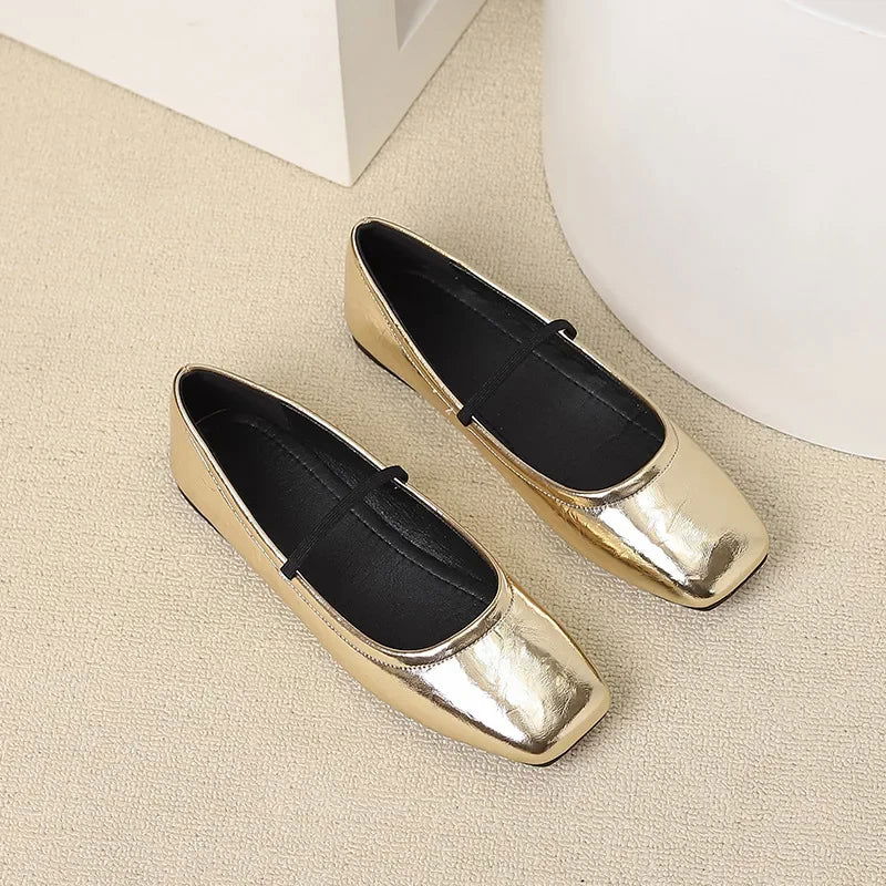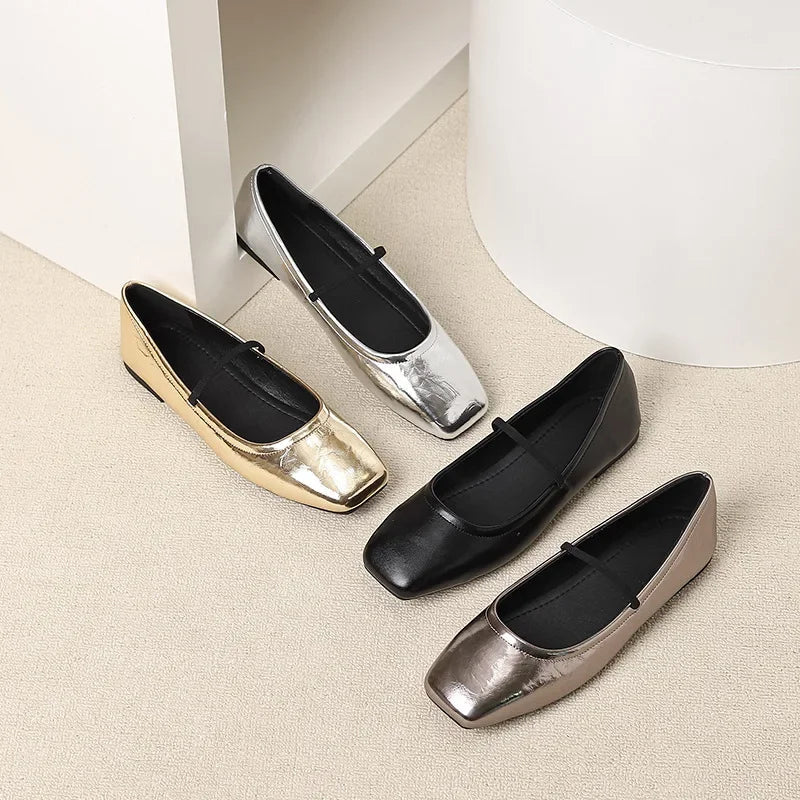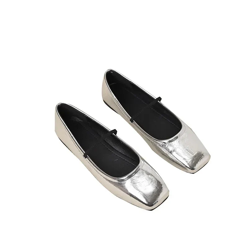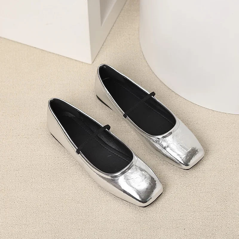 Marta | Ballerine Nere Punta Quadrata Finitura Metallizzata