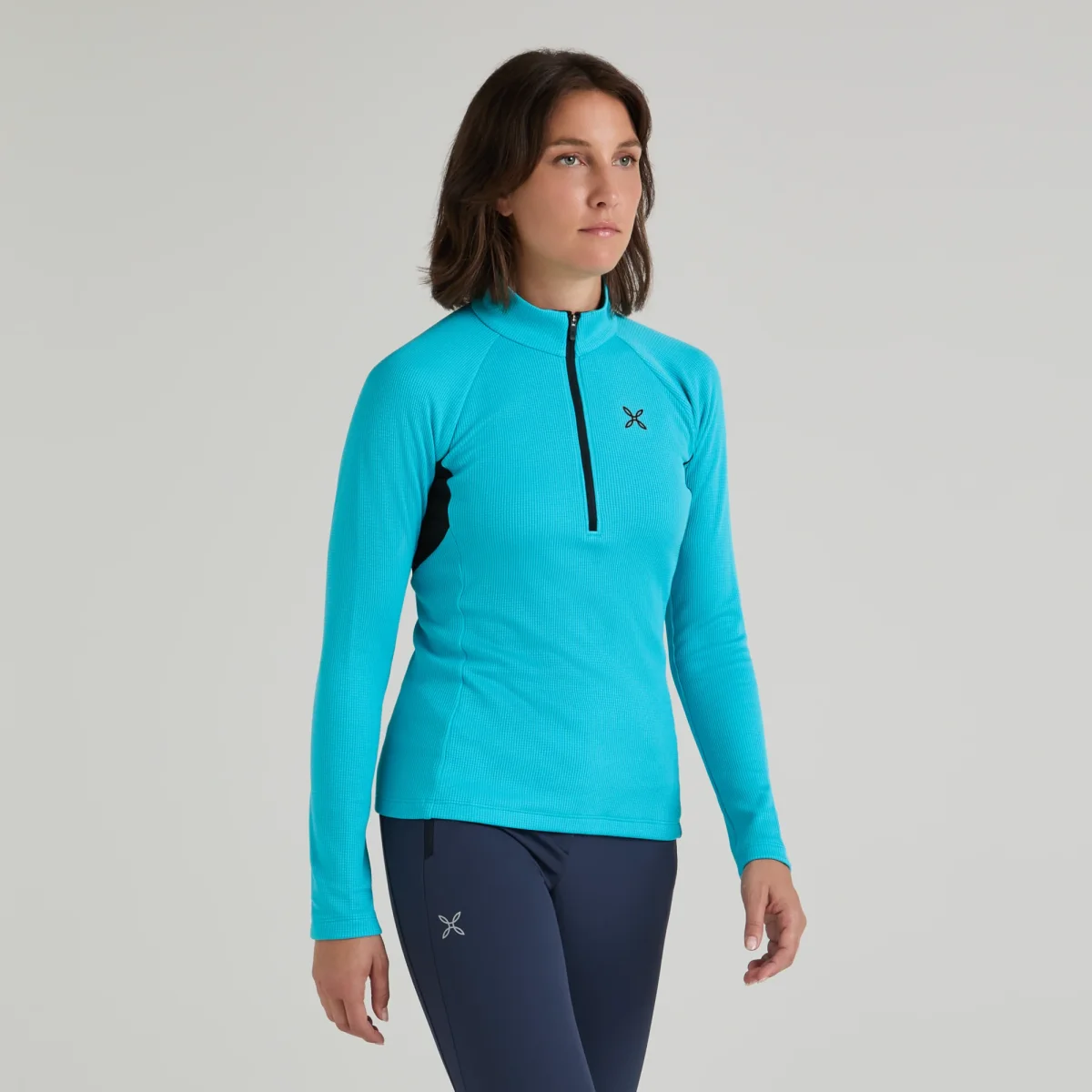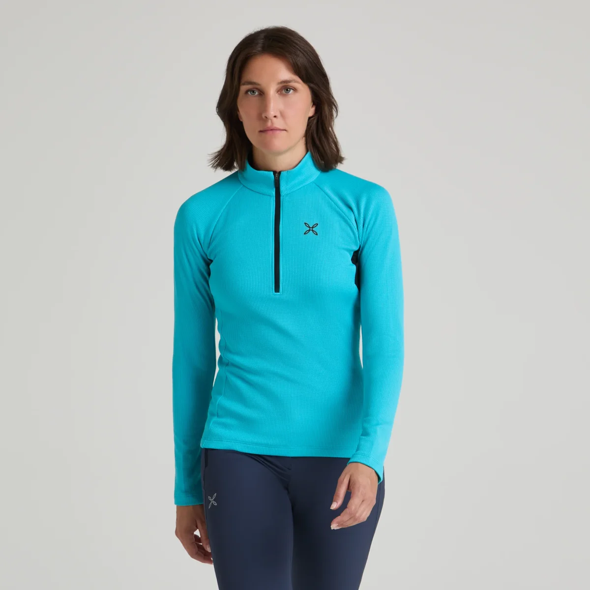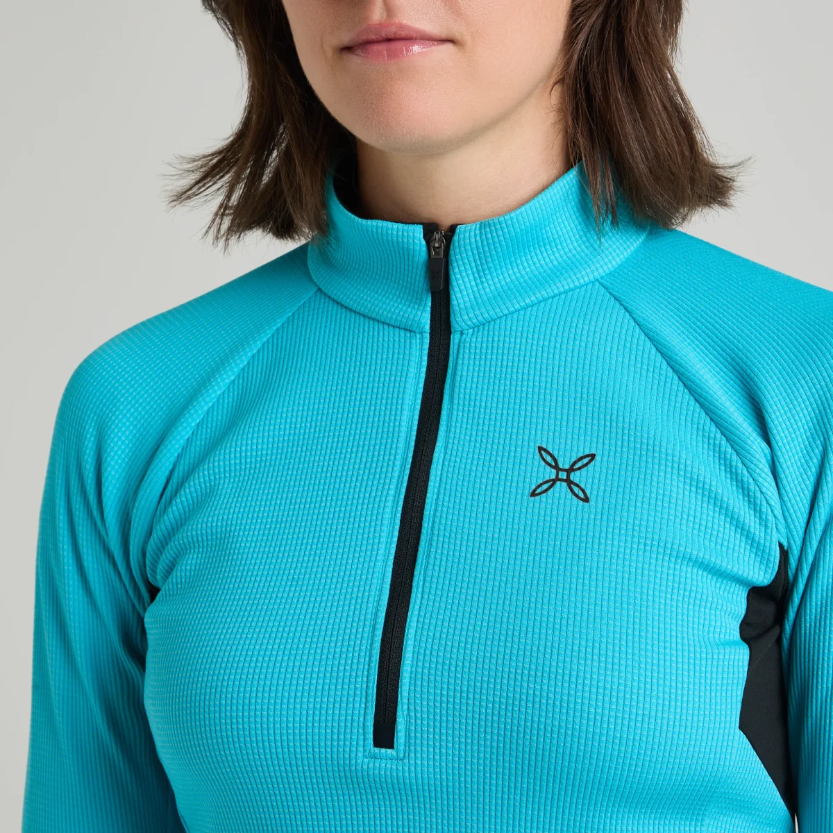 Questo mid layer leggero in tessuto di pile di poliestere traspirante con interno spazzolato รจ estremamente comodo e morbido sulla pelle. Grazie al trattamento Sanitizedยฎ che blocca la proliferazione dei batteri per prevenire la formazione di cattivi odori, รจ il mid layer perfetto per le escursioni sugli sci da rifugio a rifugio e per i trekking di piรน giorni. La mezza zip sul davanti lo rende facile da indossare anche sopra il casco. Con dettaglio in poliestere a contrasto, il pile Thermic 4 Maglia Fleece da donna ti dร un tocco di stile per la prossima avventura in montagna o sugli sci.