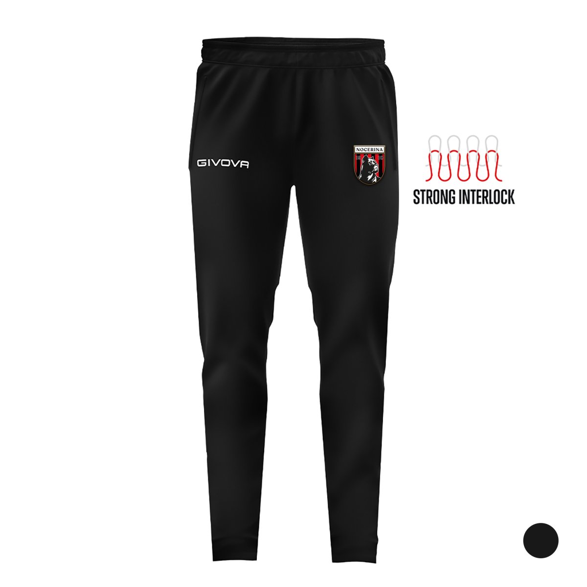 Caratteristiche: 100% Poliestere Interock Strong; Tasche laterali con zip; Loghi ricamati; Zip sul fondo del pantalone;