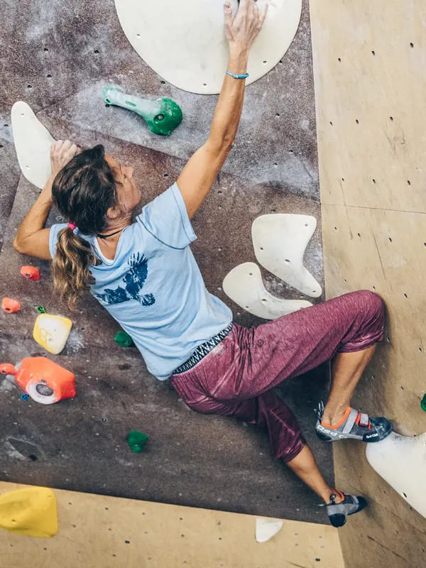 Pantaloni capri casual e comodi in jersey di cotone e lyocell con elastico decorativo in vita e stampa sui lati. Ideale per le sessioni di allenamento e tutte le attivitร post arrampicata.