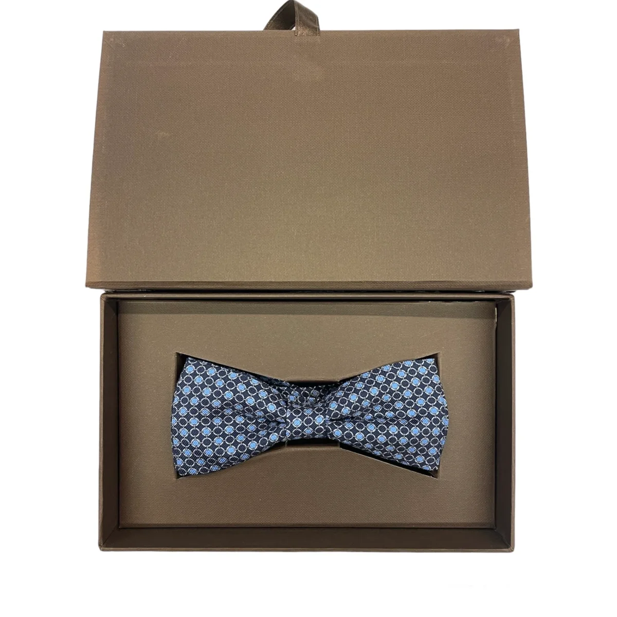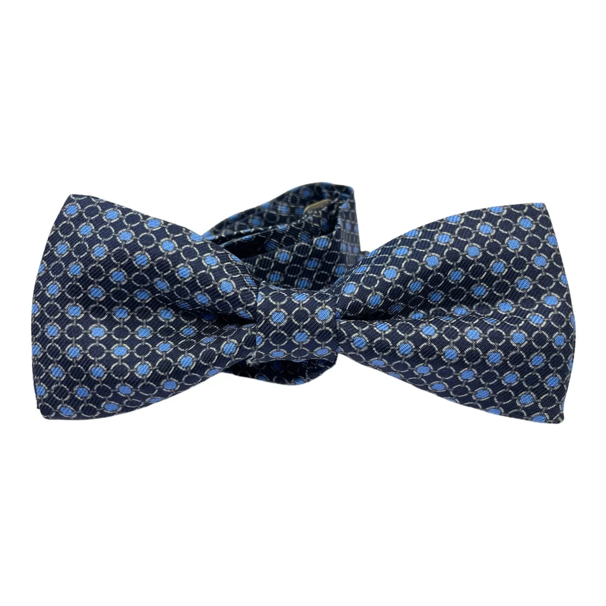 Geometrico e raffinato Il modello è un papillon sartoriale annodato regolabile. Questo è realizzato interamente a mano in 100% Seta Twill Made in Italy. Il colore scelto è blu con un pattern geometrico i cui colori si alternano in maniera armoniosa Libretto Garanzia. Confezione Elegante.