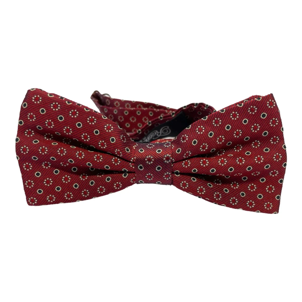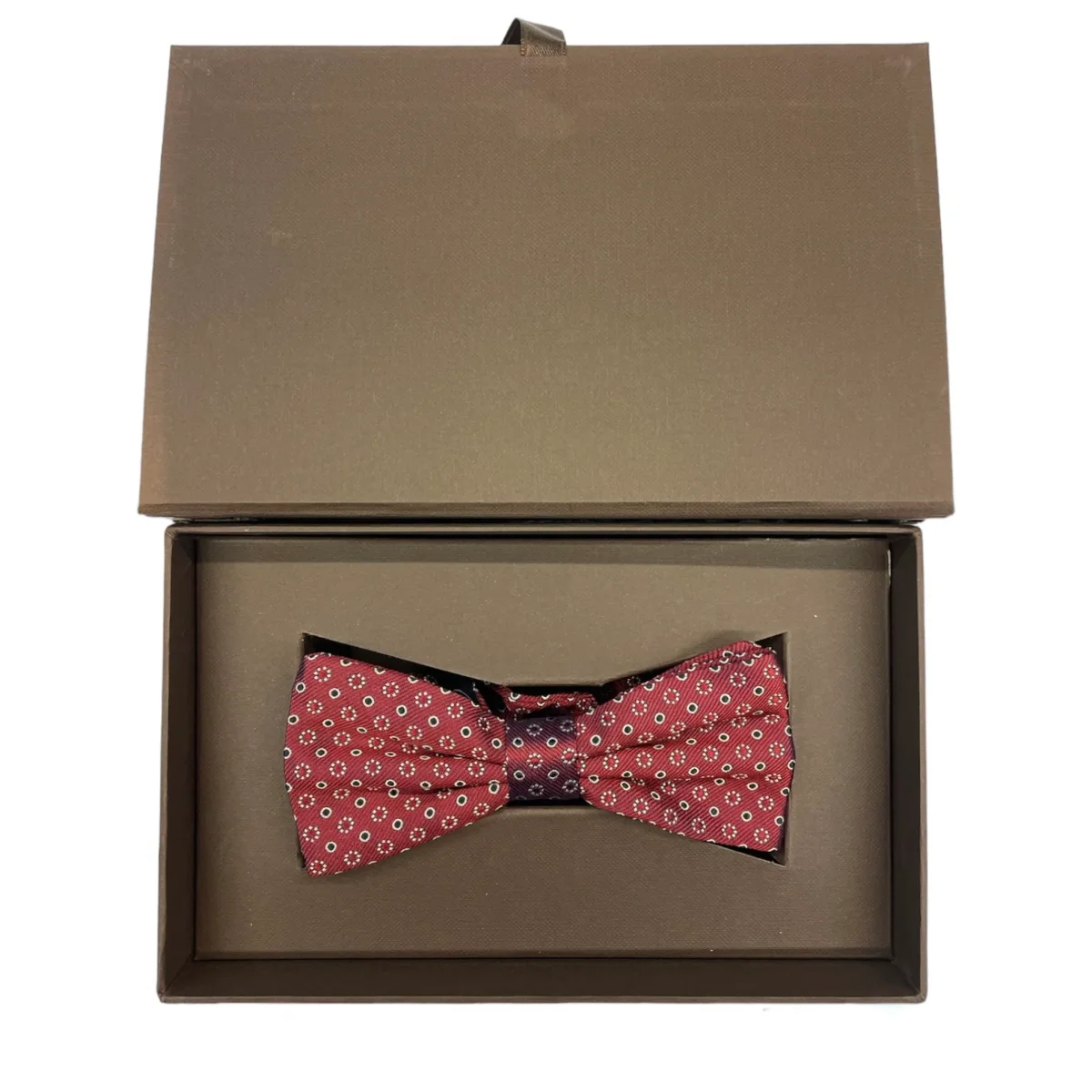 Papillon Sartoriale seta bordeaux con fiori e cerchi