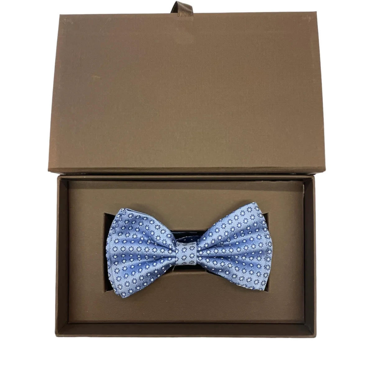 Papillon Sartoriale seta celeste fiori blu centro bianco