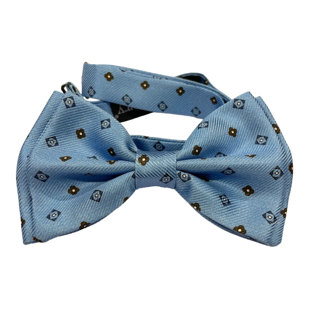 Papillon Sartoriale seta celeste fiori marroni quadri