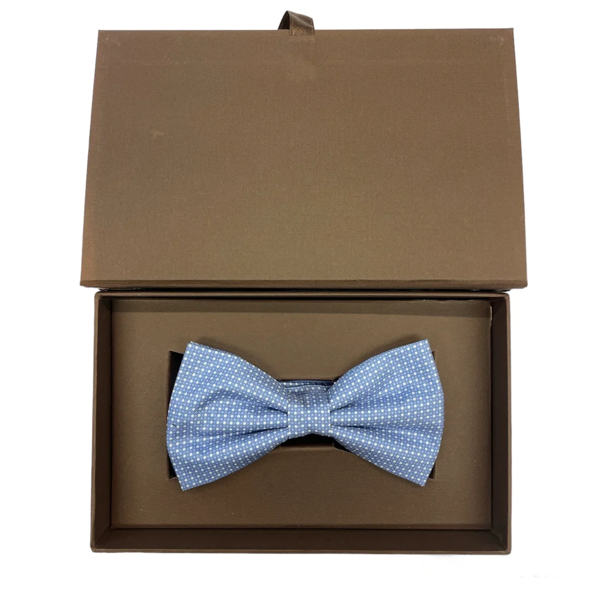 Papillon Sartoriale seta celeste punti bianchi