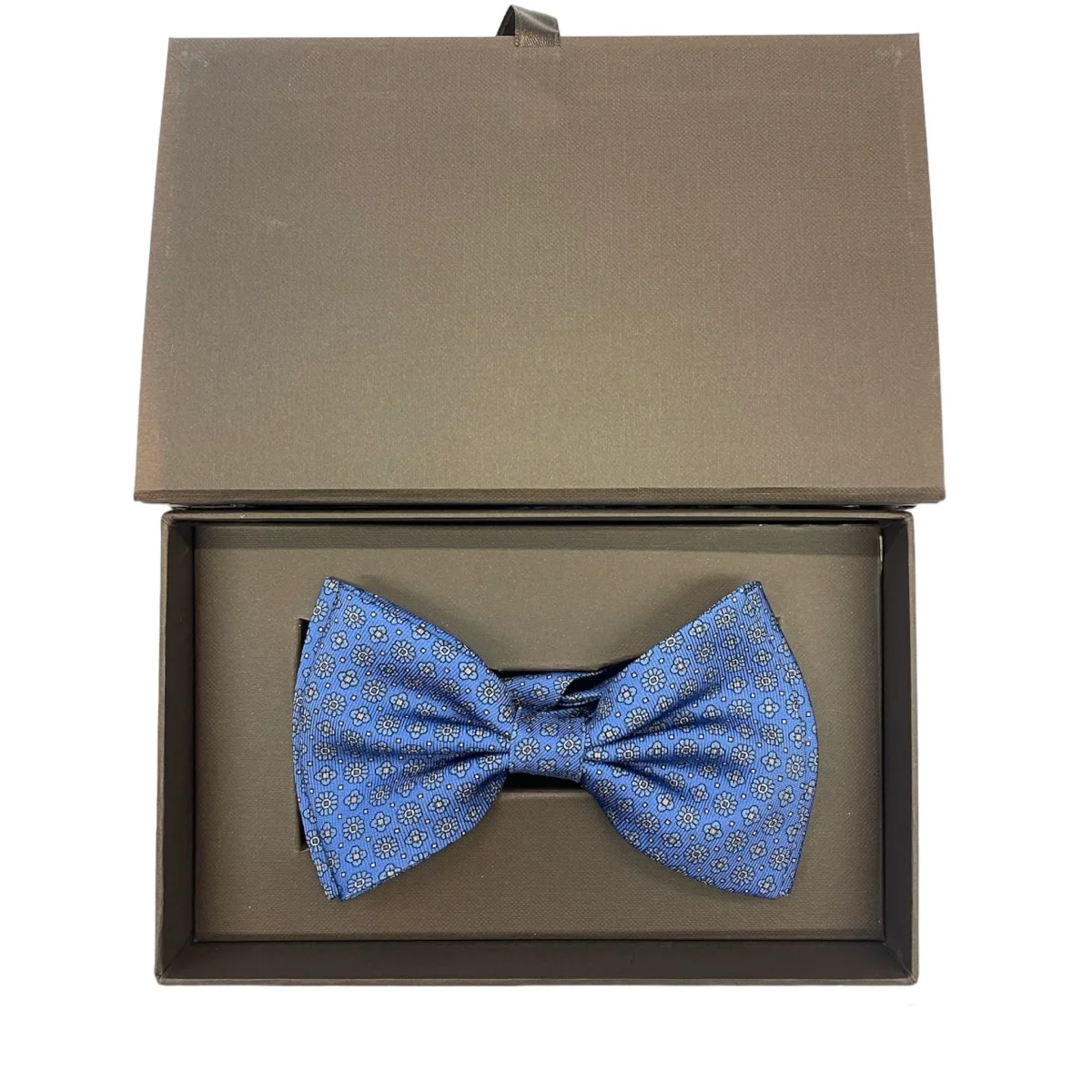 Papillon Sartoriale seta ceruleo con fiori tono su tono