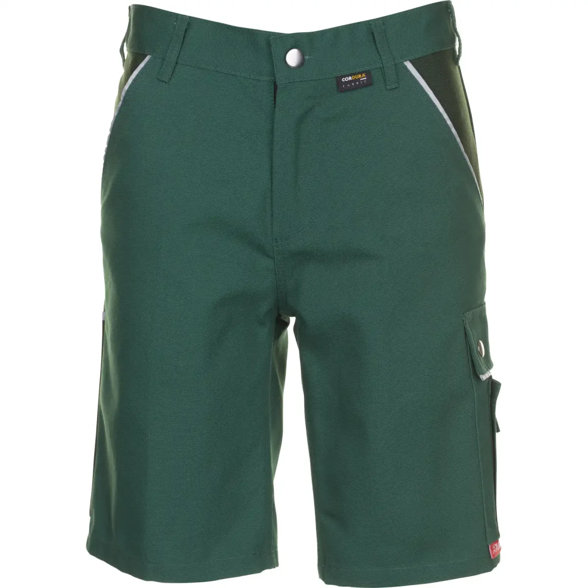 | Material Description | Work shorts made from 65% polyester and 35% cotton canvas (approx. 320 g/mยฒ), lightly brushed on the reverse side, very breathable, hard-wearing and shrink-resistant according to DIN EN ISO 6330, with reinforcements in 100% nylon original Cordura (approx. 310 g/mยฒ) in a plain weave, softly finished and extremely tear- and abrasion-resistant. |