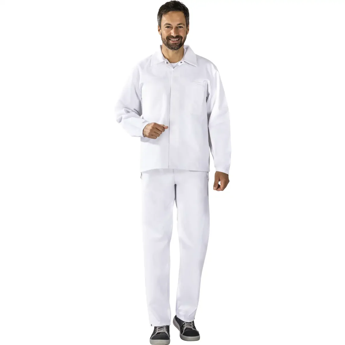 The PLANAM Food Men Jacket is engineered for demanding environments where cleanliness, durability, and comfort are essential. Specially crafted for industries like food processing, logistics, and healthcare, this professional work jacket combines a robust cotton-polyester blend with practical features such as adjustable cuffs and multiple internal pockets. With its pure white or cornflower blue color options, it presents a clean and professional look, suitable for year-round use. Invest in a jacket designed to deliver lasting performance and comfort during every shift.
