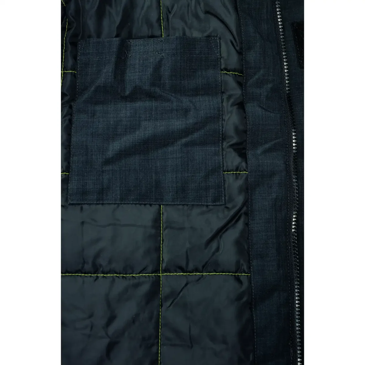 - Concealed zip with chin guard: Comfort and protection at the neck area.