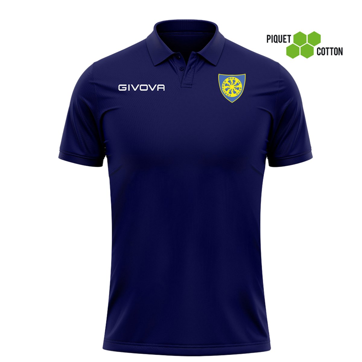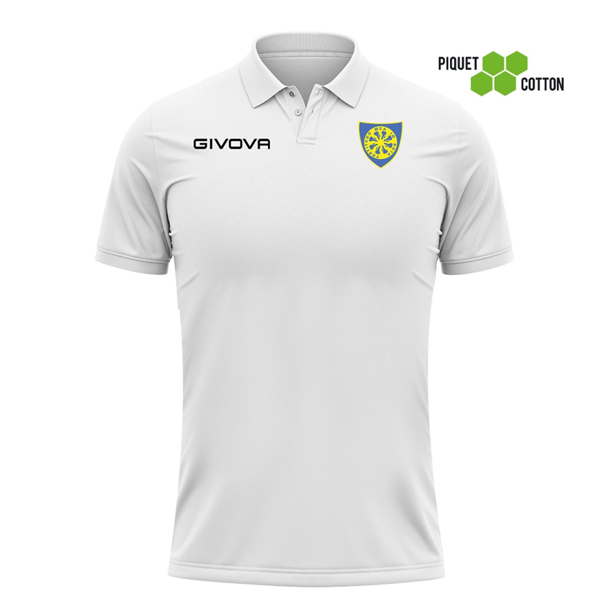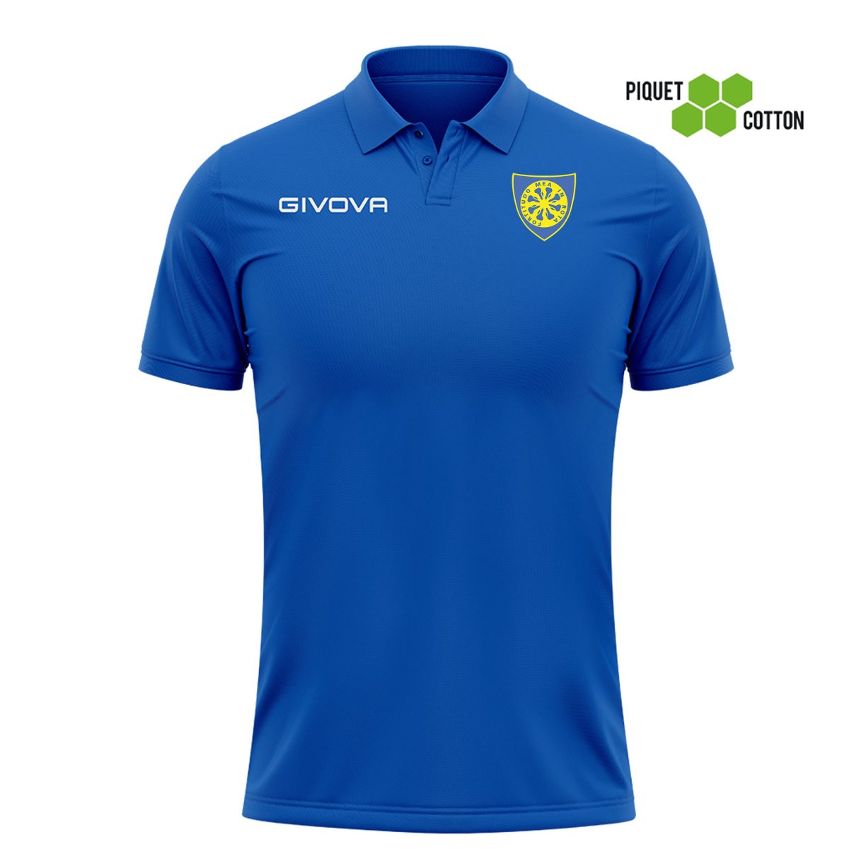 Caratteristiche: Polo Unisex Uomo – Donna in 100% Cotone Piquet 180 gr; Logo Givova ricamato; Colletto in costina con 2 bottoni; Giromanica in costina; Logo/patch del Team in transfer Le proprietร del cotone con una struttura a nido d’ape.