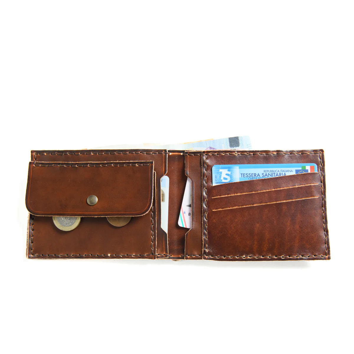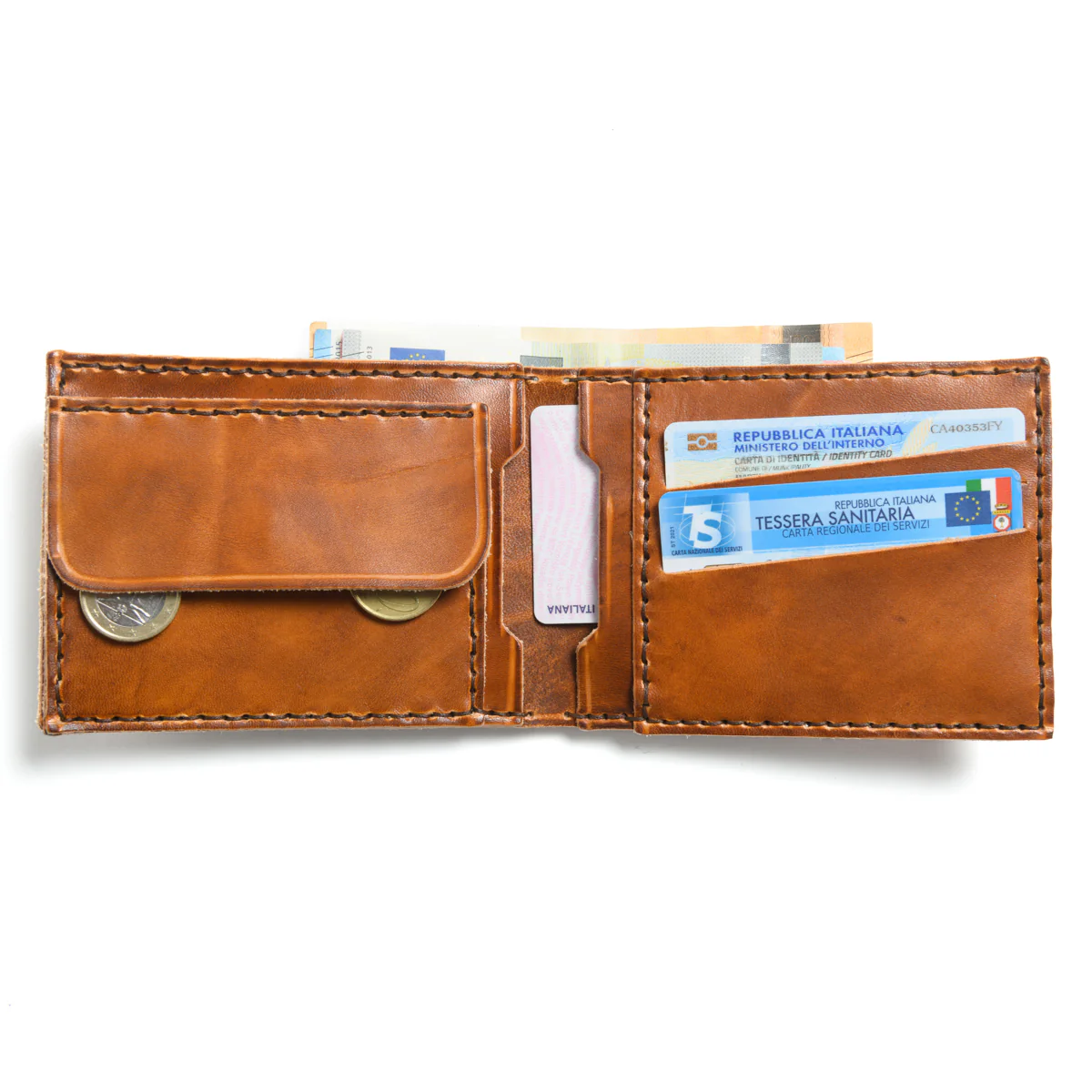 Realizzato in vero cuoio liscio di prima scelta, questo portafoglio รจ costruito per resistere all’uso quotidiano e diventare ancora piรน bello con il passare del tempo. Ogni dettaglio, dalle cuciture robuste alla finitura della pelle, racconta una storia di passione e maestria.