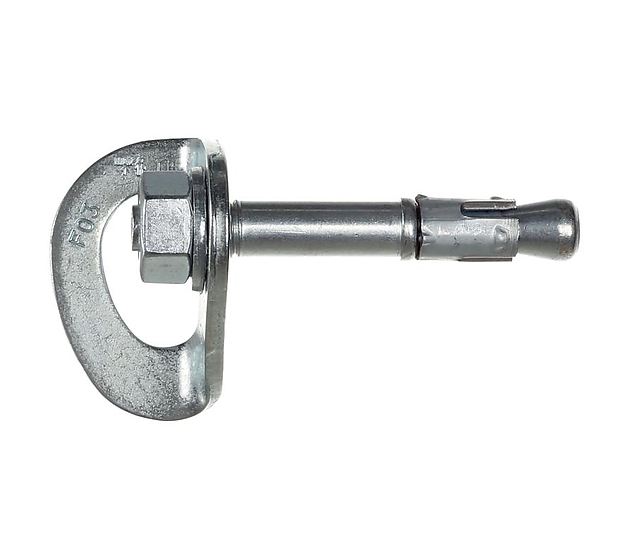 Piastre pendenti con bulloni per punto di ancoraggio permanente in acciaio zincato spessore 4 mm. Catenacci in acciaio zincato in diametro 12 mm. Profondità del foro per il bullone 75 mm. Consigliato per ambienti interni e asciutti