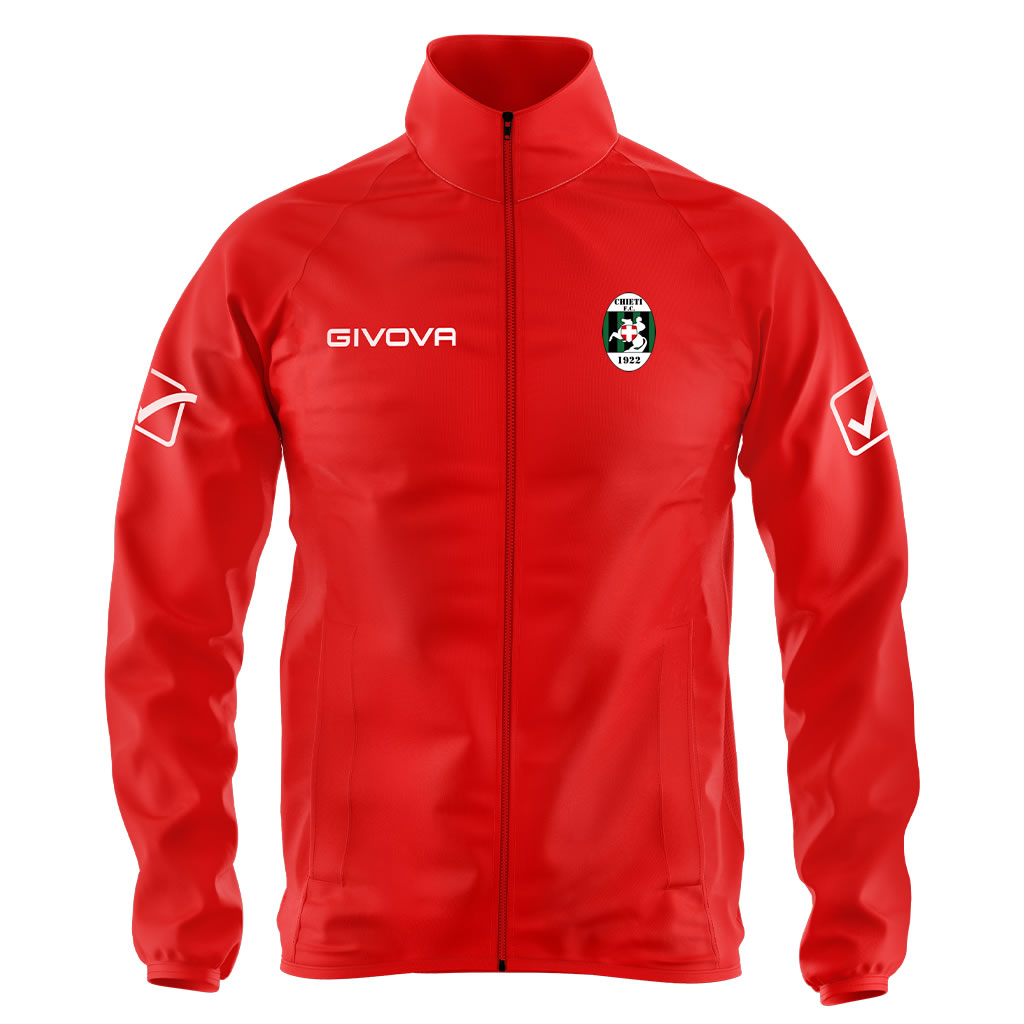 Giacca antivento con cappuccio in 100% poliestere 57 Gsm ad alta tecnologia, impermeabile, pratico e versatile, adatto per il calcio, l’allenamento, running, padel. Caratteristiche: 100% Poliestere 57 Gsm; Loghi Givova ricamati; Zip intera; Cappuccio estraibile a scomparsa; Tasche laterali; Logo del Club in Stampa Transfer