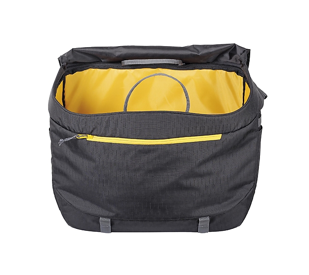 Borsa a tracolla in stile urbano con telo in corda rimovibile per arrampicata in palestra o bouldering. Scomparto principale adatto per una corda da 70 m e altri attrezzi da arrampicata. Facile regolazione tramite sistema di chiusura con fibbie in lega leggera. Tracolla completamente regolabile con comoda imbottitura. Maniglia resistente per un facile trasporto in mano. Due tasche laterali per piccoli oggetti (una con velcro, l’altra aperta). Slot per uno spazzolino da denti e altre attrezzature e tasca con cerniera con clip per chiavi per i tuoi oggetti essenziali. Telo in corda removibile con dimensioni 135×150 cm. Due maniglie agli angoli del telo per riporre velocemente una corda nella borsa, diversi colori degli anelli per una facile identificazione delle estremità della corda. Due maniglie interne per un facile trasporto della borsa aperta. Fondo, lati e parte posteriore rinforzati per una maggiore durata e un comodo utilizzo della borsa. Capacità 28 litri.