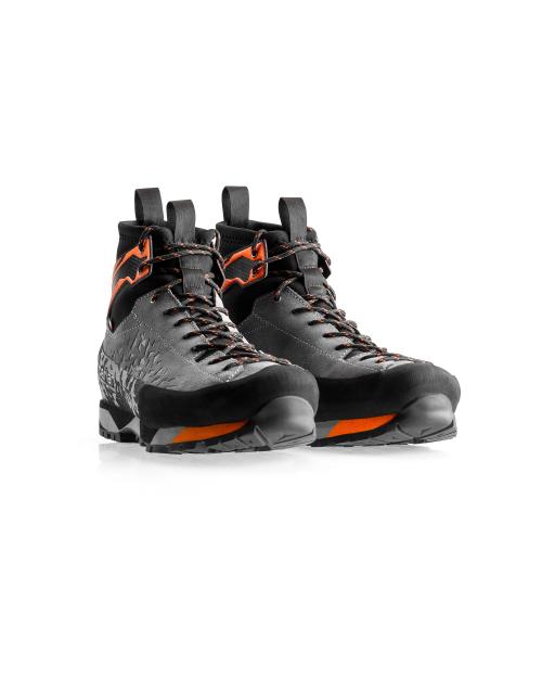 La tomaia, in pelle scamosciata embossed, è protetta da un fascione a 360°per aumentarne la resistenza all’usura e allo sfregamento contro rocce e pietrisco. Salathè è idrorepellente grazie allo specifico trattamento Hydroblock ®, e la sua impermeabilità è garantita dalla fodera GORE-TEX Extended Comfort.