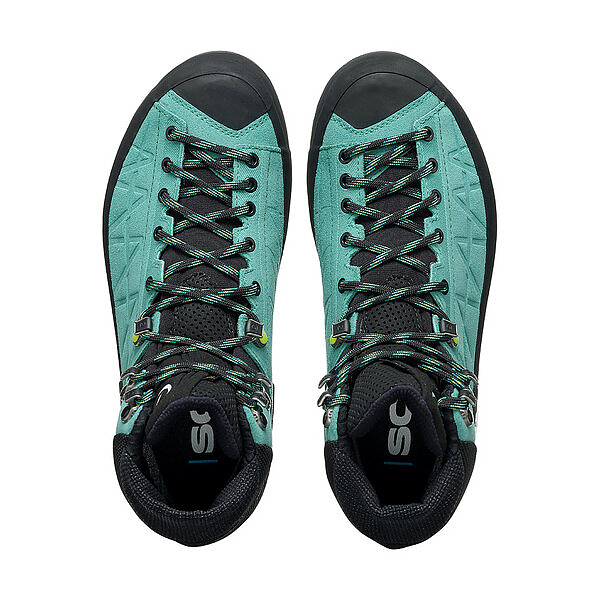 Extended Lacing estesa fino in punta di derivazione climbing, per massima personalizzazione e comfort di calzata. Laccio trattenuto da occhielli in metallo.