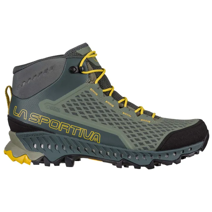 Scarponcino fast hiking di taglio mid per lโescursionismo veloce. Adotta soluzioni che sono parte del DNA mountain La Sportiva combinandole a tecnologie e concetti di derivazione Mountain Running per un prodotto versatile, impermeabile e super traspirante grazie alla nuova tecnologia GORE-TEX SURROUNDยฎ. Tomaia: Mesh a alta resistenza allโabrasione + struttura Nano Cell 2.0 + puntalino e tallone in PU TechLite Fodera: GORE-TEX SURROUNDยฎ Intersuola: EVA a compressione ammortizzante con fianchi in TPU e canali di areazione GORE-TEXยฎ SURROUNDโข Plantare: Ortholite Mountain Hiking 5mm Suola: Vibram XS Trek IBS Peso: 450 g a mezzo paio misura 42